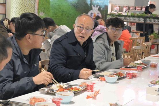 “上学期期末成绩怎么样?”“今年有哪些规划?”“这学期新开设了哪些专业课程?”......围坐一堂,李东升对照4位同学上学期的成绩单,逐一听取了大家过去一学期在专业学习、校园生活、社会实践等方面取得的成绩和存在的不足,了解了同学们新学期的学业规划和目标设定。共进午餐时,李东升还与同学们就“Deepseek”赋能专业学习、备考四六级、考研等话题进行讨论交流,针对大家提出的困惑,他都一一指导和解答,师生畅所欲言,现场气氛轻松愉悦。