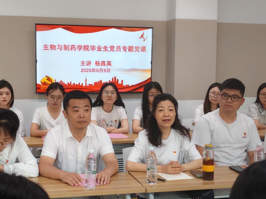 2025届毕业生党员离校在即,为进一步加强党员教育、管理和服务,6月5日上午,生物与制药学院举办“青春向党,筑梦远航”2025届毕业生党员主题教育活动。学院领导班子成员、学生党支部书记及全体毕业生党员齐聚一堂,以多元形式共话初心使命,筑牢信仰之基。