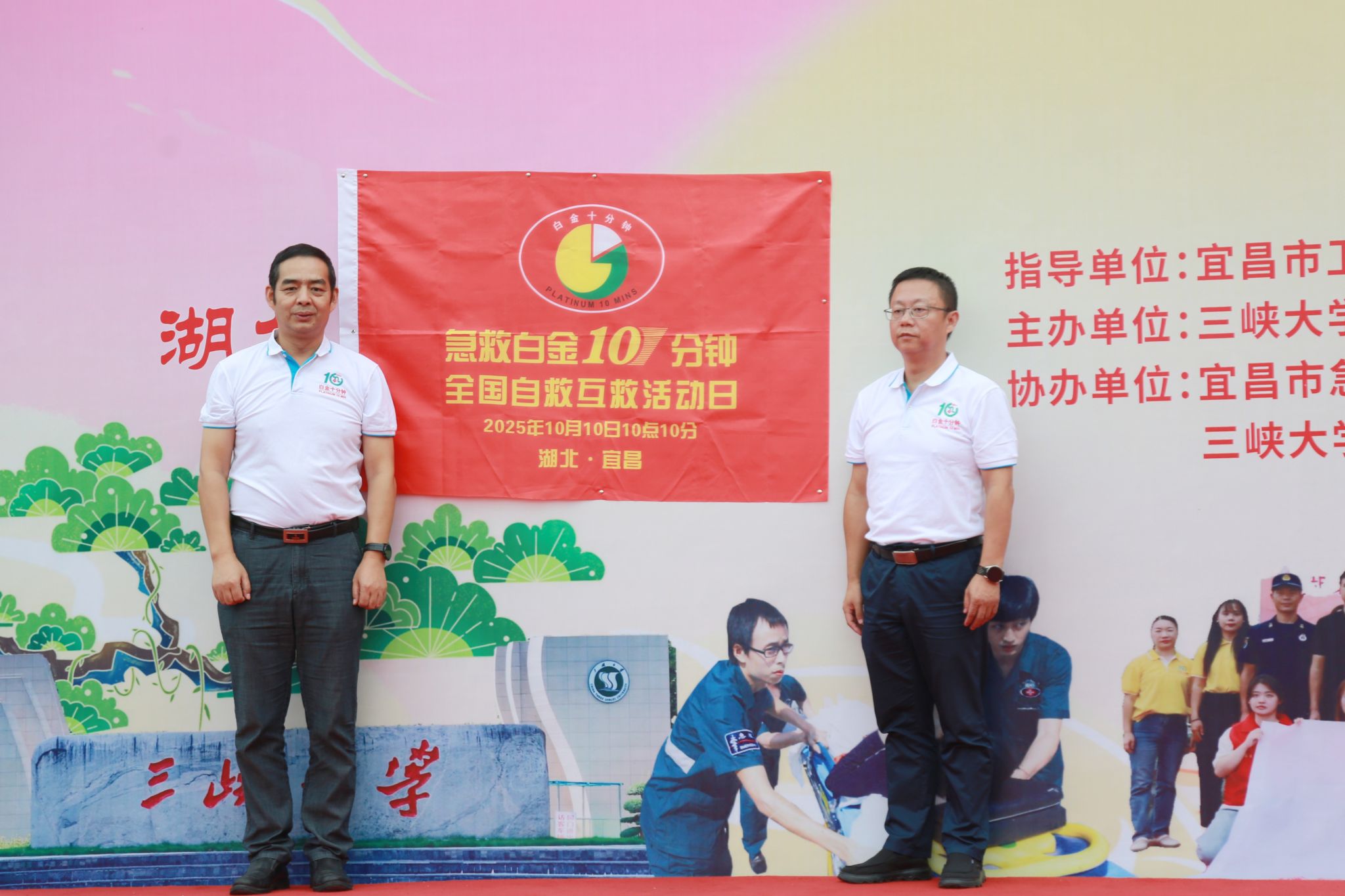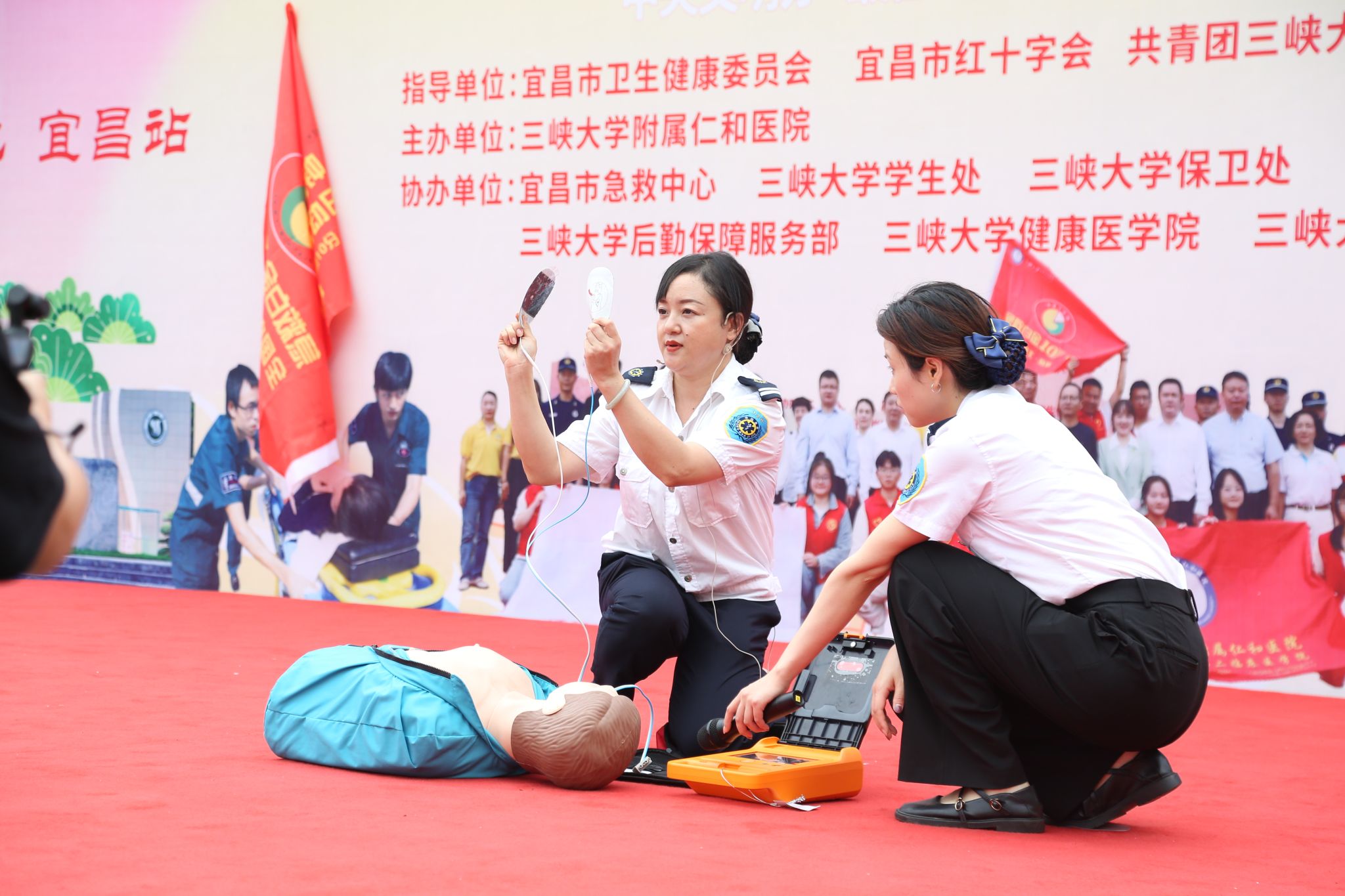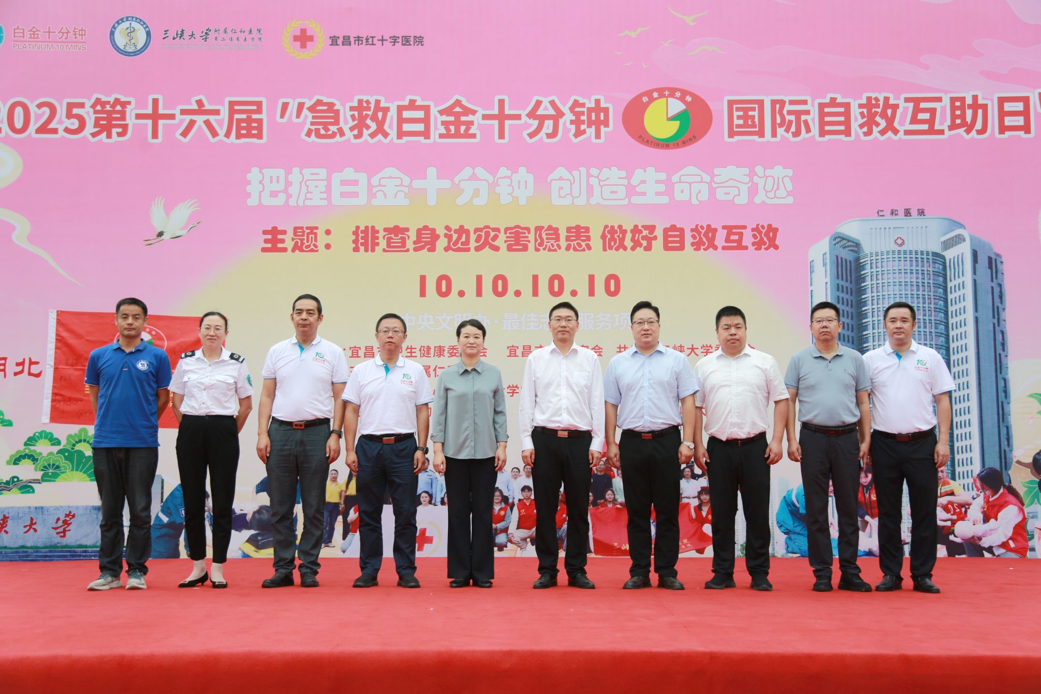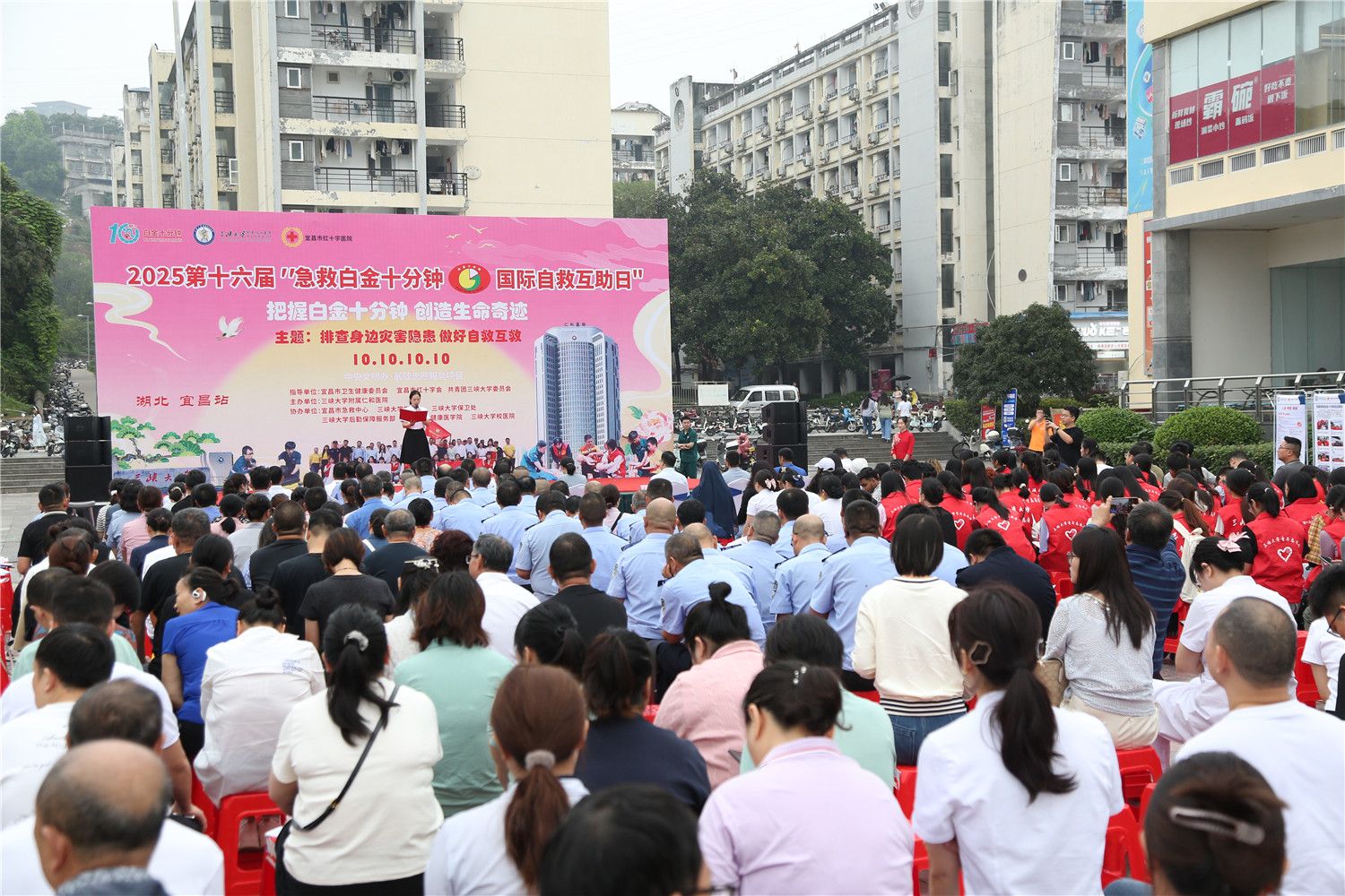 10月10日上午,由我校附属仁和医院主办的第十六届“急救白金十分钟”全国自救互救志愿服务宜昌站活动在沁苑广场成功举行。活动由宜昌市卫生健康委员会、宜昌市红十字会、共青团三峡大学委员会指导,宜昌市急救中心,我校学生处、保卫处、后勤保障服务部、健康医学院、校医院等单位共同协办。宜昌市红十字会党组书记、常务副会长丁晓燕,我校党委常委、副校长张锐出席并致辞。