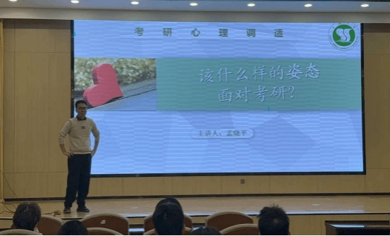 最后,学校大学生心理健康教育中心孟晓平老师为考研学生作考研冲刺心理调适讲座。他通过真实案例讲解了高效情绪调节技巧,鼓励大家建立积极备考心态,提升应试心理韧性。