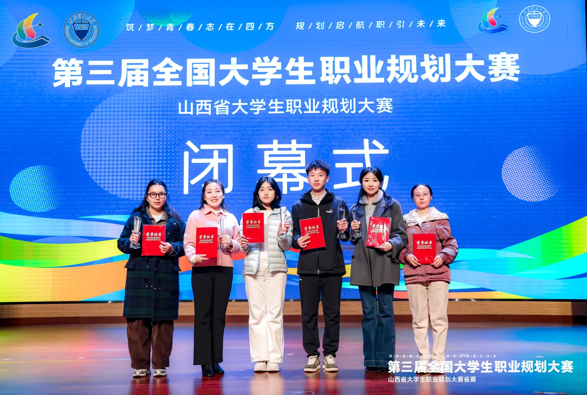 3月20日下午,第三届全国大学生职业规划大赛山西省赛颁奖典礼在太原理工大学举行,我校师生再创佳绩。课程教学赛道获银奖1项,学生赛道摘得金奖3项、银奖1项、铜奖1项,6名教师获优秀指导教师奖。