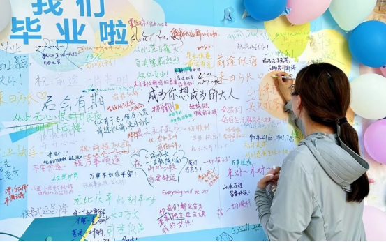 精心设置的寄语墙,则化作一片情感的海洋。一笔一划承载着千言万语:有的字迹飞扬,满载对书院培育之恩的深深谢意;有的笔触细腻,诉说着对室友伙伴的依依惜别;还有的字里行间激荡着豪情,憧憬着广阔天地,立志让梦想的种子破土而出,绽放耀眼光华。三尺寄语墙,是文澜学子写给青春的情书,承载着满满的祝福、期待与眷念。