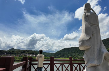最后一站来到新昌,学子们攀行于天姥山的青苔石阶,切身感受这座因李白《梦游天姥吟留别》而名扬千古的瑰丽山川。及至拨云尖顶,云海翻涌,群峰如岛浮沉,“霓为衣兮风为马,云之君兮纷纷而来下”的仙境意象扑面而至,令同学们深感震撼。随后,团队探访了素有“越国敦煌”之称的大佛寺。寺内,五百余尊跨越六朝至唐宋的摩崖造像静立崖壁。此外,大家还了解到孟浩然、皎然等唐代诗僧在此的足迹与诗篇,体悟此地自然景观与宗教文化、诗词艺术的深度交融。