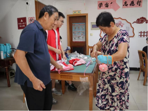 暖阳洒进温馨的社区活动室,艾草的清香悠悠弥漫。志愿者们围坐在老人身旁,或耐心讲解艾草垂的制作工艺,或细致地协助老人穿针引线、固定艾草。老人们脸上洋溢着慈祥的笑容,时而专注制作,时而分享着过去与艾草相关的民俗故事,时光在这温馨的互动中缓缓流淌,满室都是温暖的气息。