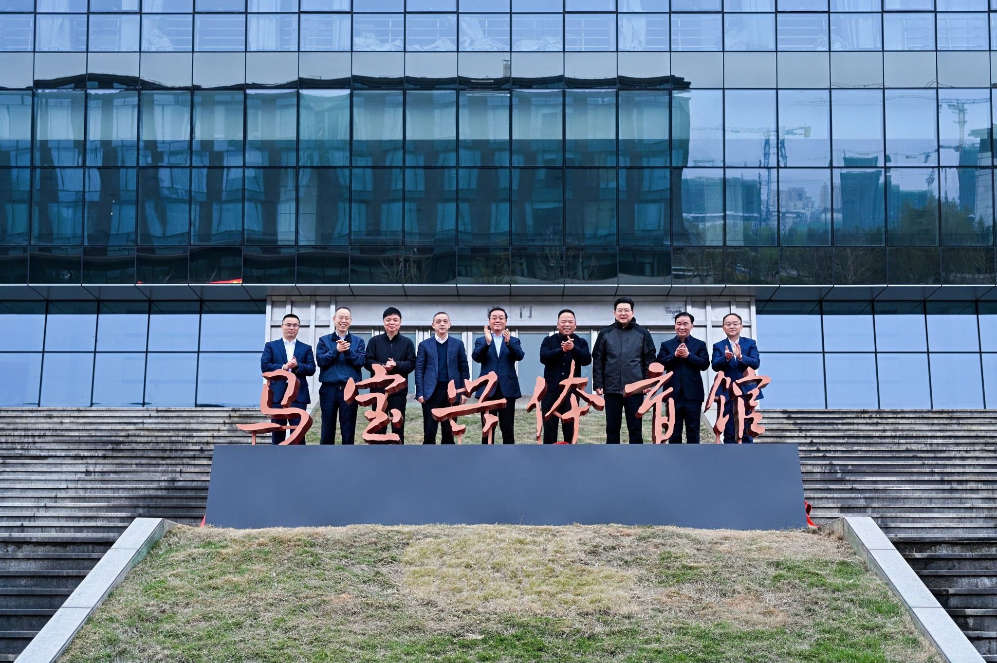 捐赠仪式后,马建荣先生、马仁和、陈忠静、王存波、施惠芳、马国灿、孙君、崔凤军、赵阳共同为“马宝兴体育馆”揭幕。