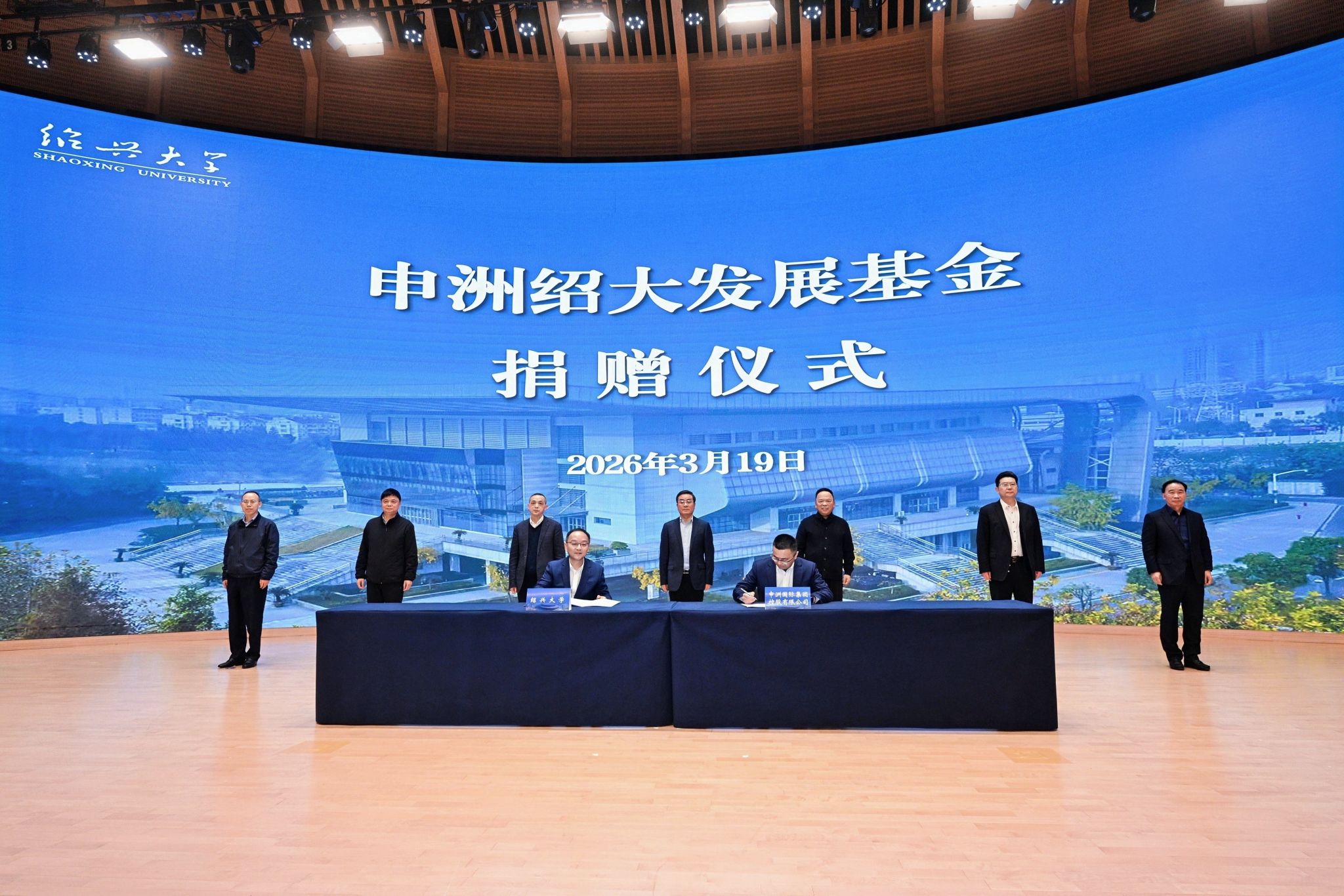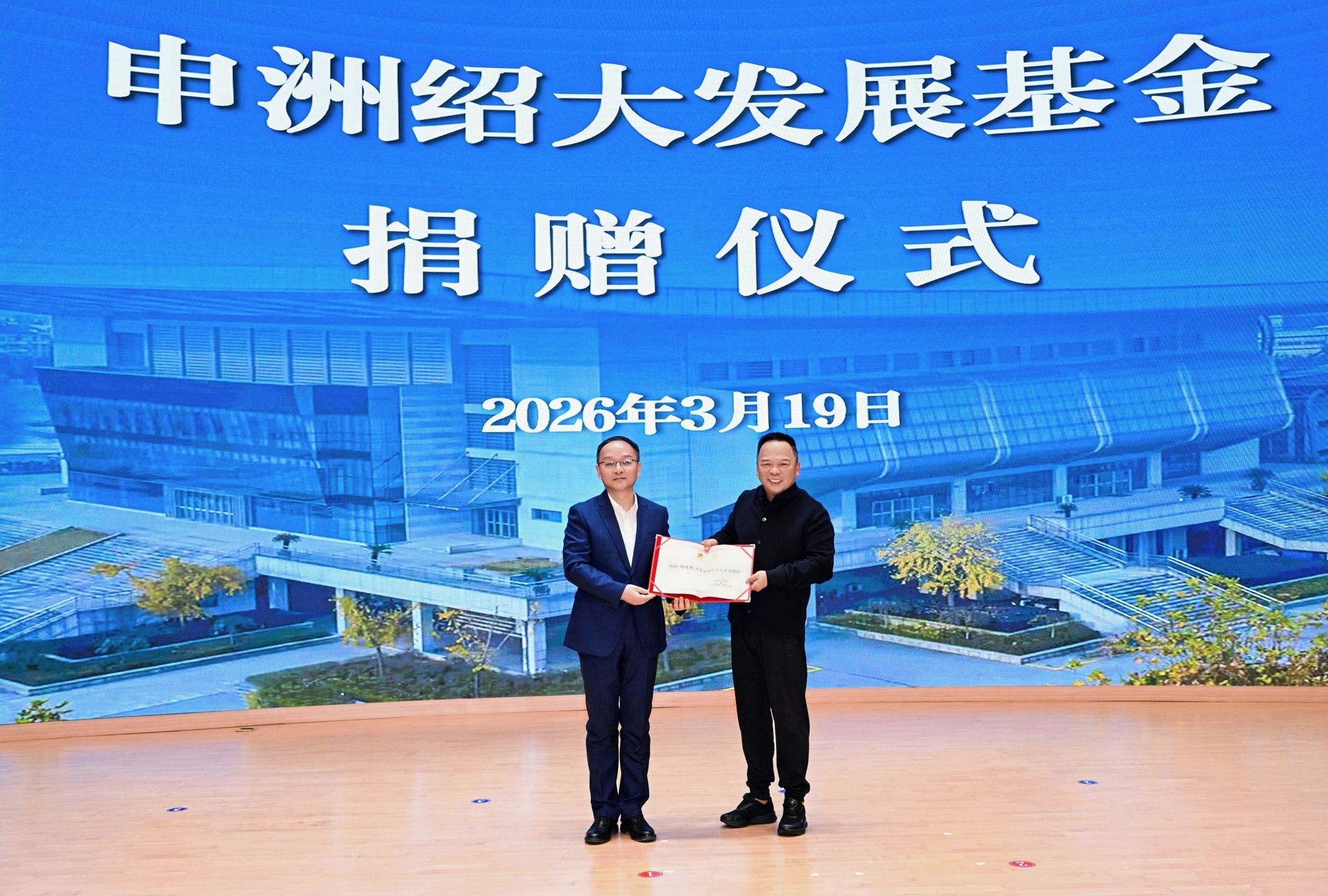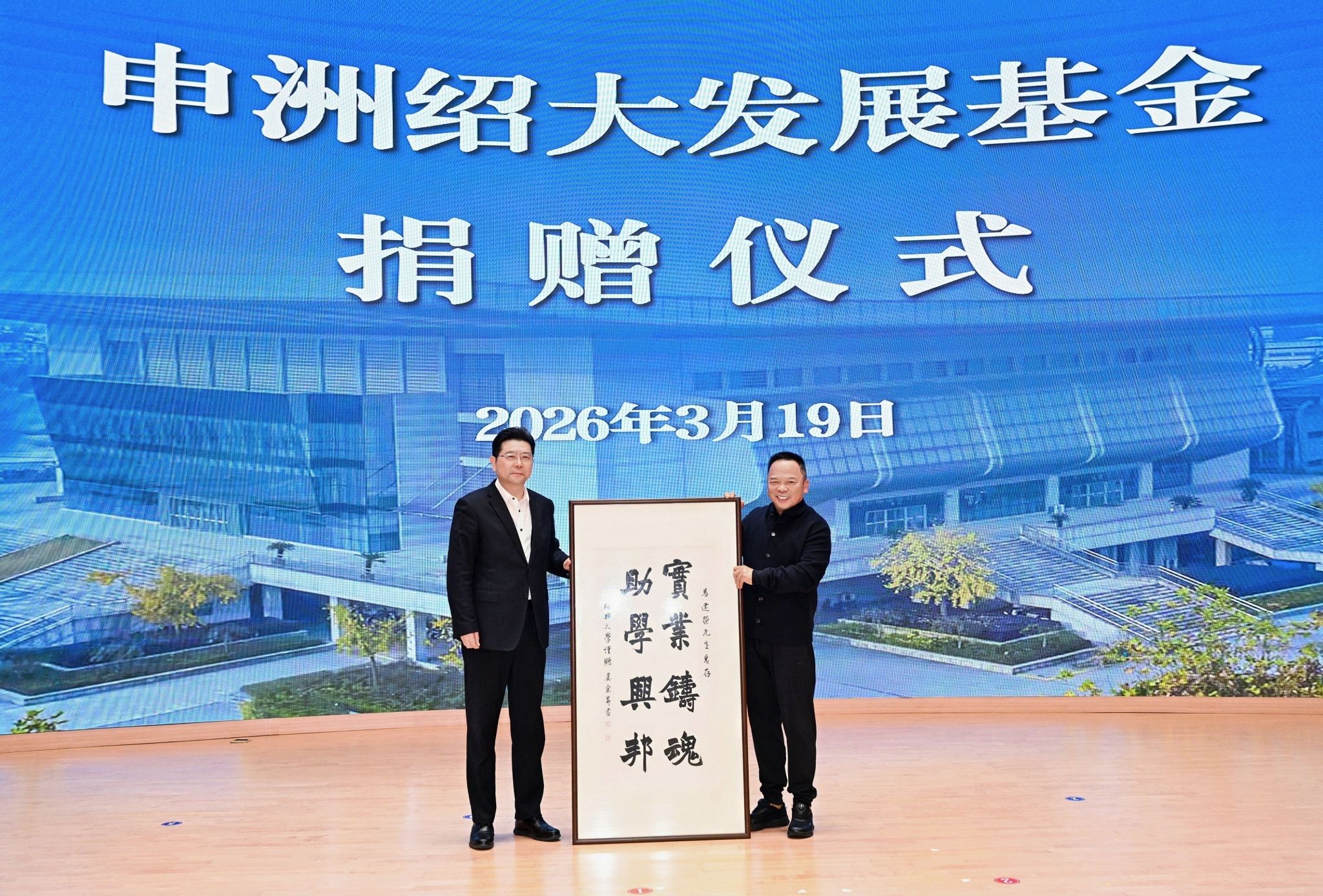 善举筑梦,教育兴邦。3月19日下午,申洲绍大发展基金捐赠仪式在学校举行。市委书记施惠芳见证并讲话,申洲国际集团控股有限公司执行主席马建荣先生、学校党委书记崔凤军致辞。申洲国际集团控股有限公司总裁兼联席首席执行官马仁和、执行副总裁陈忠静、执行副总裁兼首席财务官王存波,市人大常委会副主任、市委秘书长马国灿,副市长孙君,学校校长赵阳和领导班子成员,市教育局局长石剑晗等出席捐赠仪式。仪式由副校长陈均土主持。