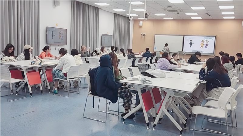 “我真正走上讲台教学是在2020年春季学期,那时正赶上疫情。作为一位新手教师,那会儿真是手忙脚乱!这讲台还没站稳呢,就被迫当上了主播,开始搞线上教学。”傅飞娜笑着介绍道。2020年初,新手教师傅飞娜以全新的角色走进“课堂”,既兴奋又紧张,欣喜的是终于如愿站上了三尺讲台,不安的是这三尺讲台竟然变成了“一方屏幕”。从教第一课便在这样一个特殊有趣又富有意义的环境中开场。