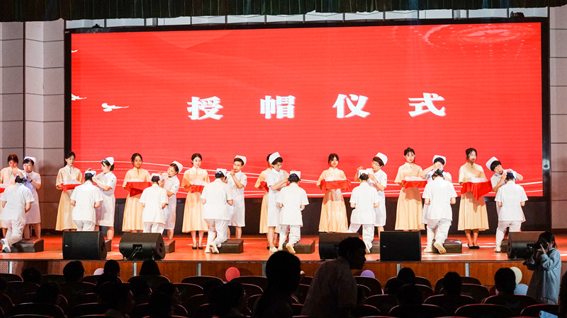 晚会现场,梁瑜为最美“护生”颁奖。李黎、石旭明为礼仪风采大赛获奖队伍颁奖。学工部、团委负责人为护理学科竞赛获奖班级颁奖。优秀校友朱淑婷发言。护理学子进行礼仪风采展示。授帽仪式上,护理学子佩戴圣洁燕帽,手持点燃象征南丁格尔精神的蜡烛,在老师的领誓下庄严宣誓。