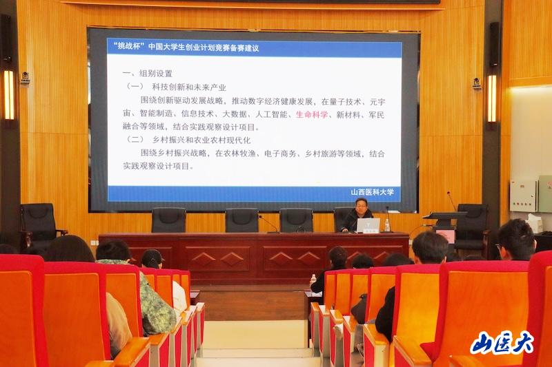 3月11日下午,由校团委主办、公共卫生学院承办的“青春创想荟”第十期——“挑战杯”中国大学生创业计划竞赛备赛讲座在杏林学生社区开讲。本次讲座由山西农业大学农业工程学院、第十三届“挑战杯”中国大学生创业计划竞赛金奖指导老师武志明教授主讲,校团委副书记张海燕主持,来自各学院的200余名学生现场聆听了讲座。
