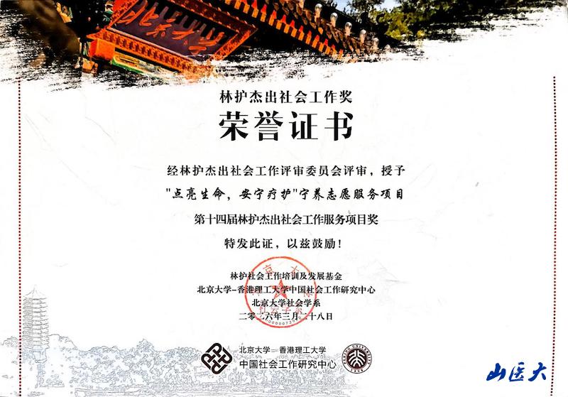 喜讯!山西医科大学宁养志愿服务项目荣获“第十四届林护杰出社会工作服务奖”