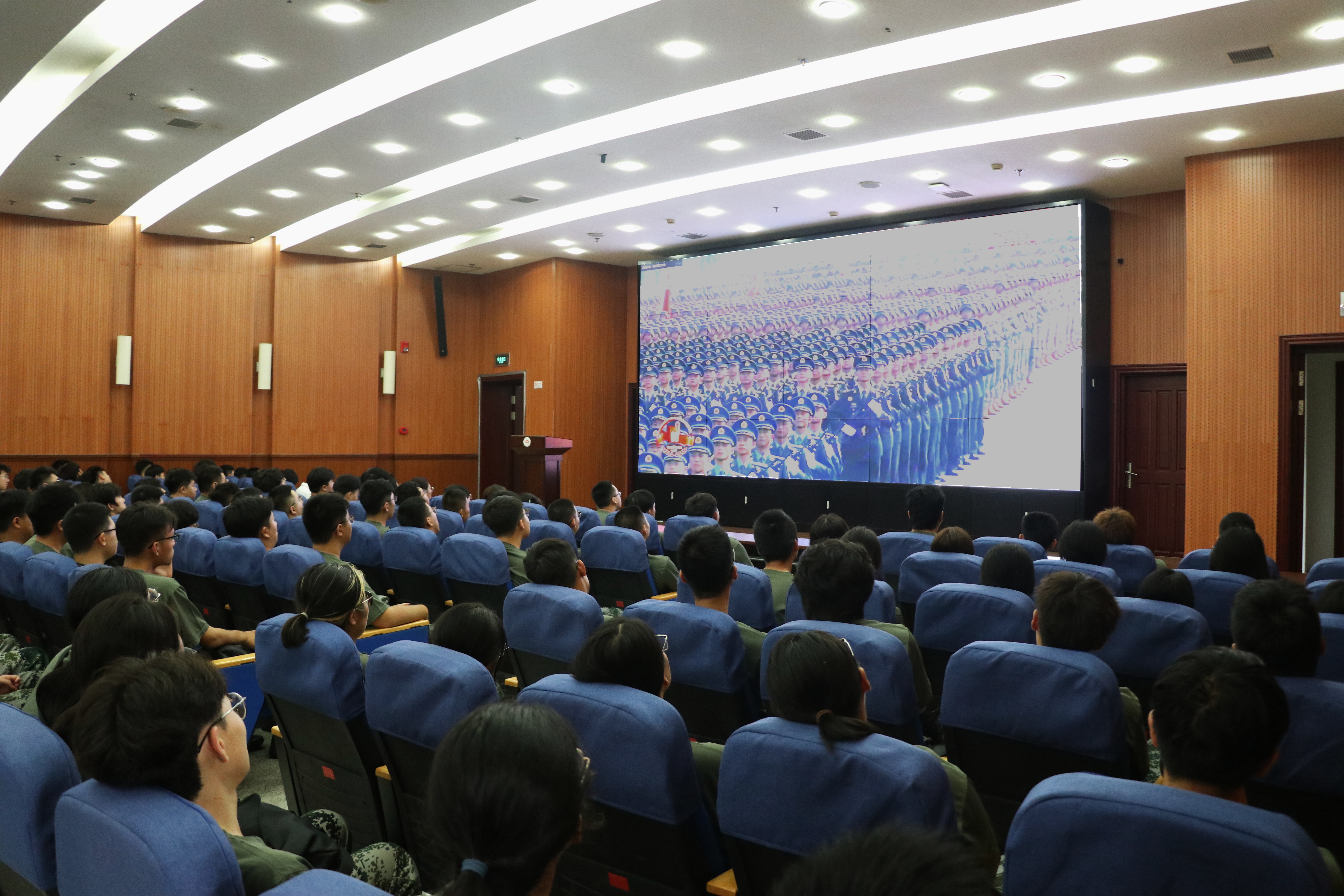 全体师生共同收看了“纪念中国人民抗日战争暨世界反法西斯战争胜利80周年大会”现场直播。屏幕上,整齐的方阵、先进的装备、磅礴的气势,让现场5000余名师生倍感震撼与自豪。当看到激动人心的时刻,现场响起阵阵热烈的掌声。