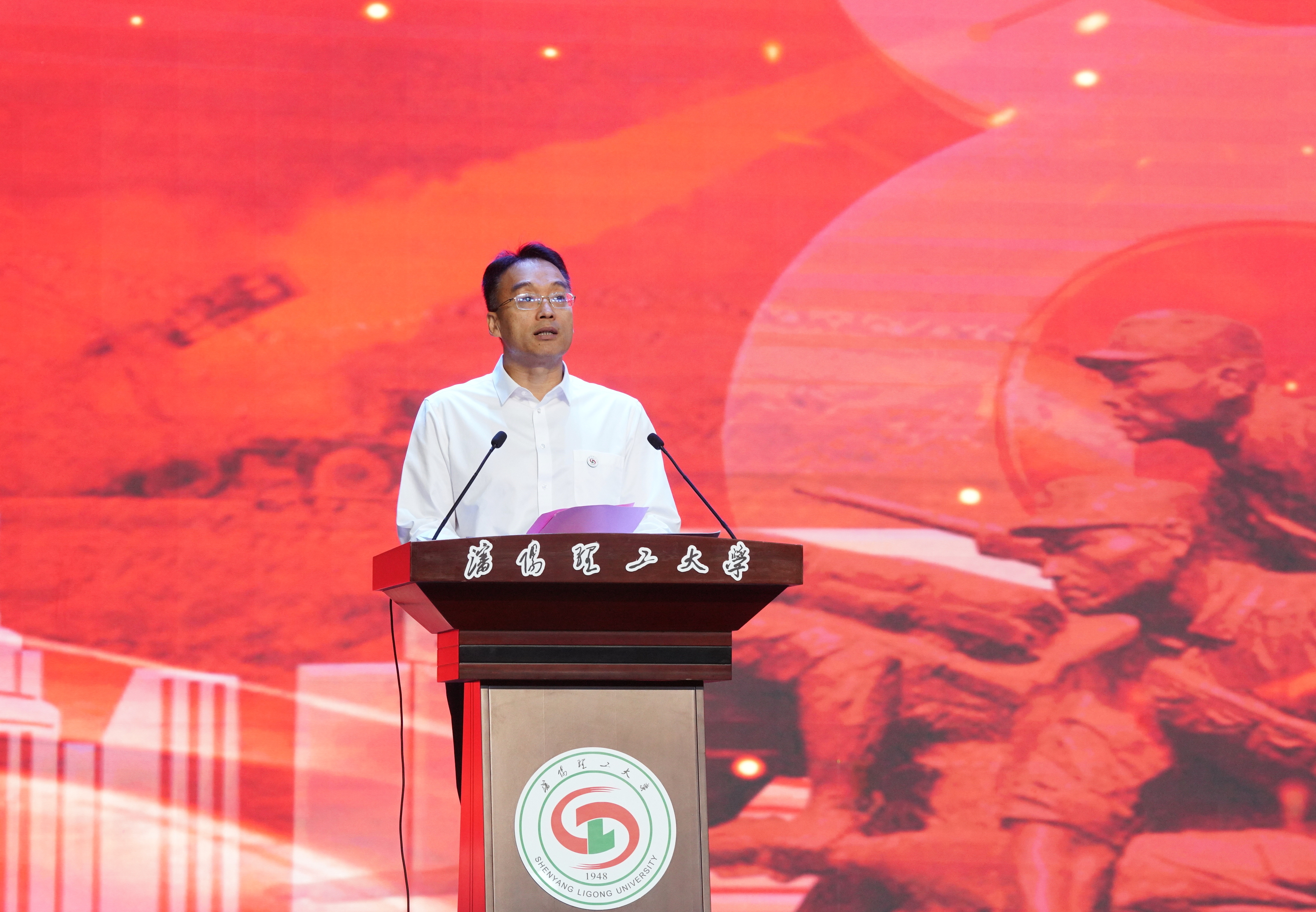 校党委书记宁先圣在讲话中强调,伟大抗战精神是中华民族在血与火的淬炼中铸就的宝贵精神财富,沈阳理工大学的兵工精神既是对伟大抗战精神的历史承续,更是在“强军梦”征程中续写民族气节的文化自觉。他寄语2025级新生要牢记习近平总书记的殷殷嘱托,以爱国为底色,做立场坚定的追光者;以奋斗为利刃,做刻苦钻研的创新者;以实干为基石,做脚踏实地的践行者;以卓越为标尺,做永不止步的攀登者。他勉励同学们以青春之我、奋进之我,在全面建设社会主义现代化国家的火热实践中,奋力书写挺膺担当的青春篇章。