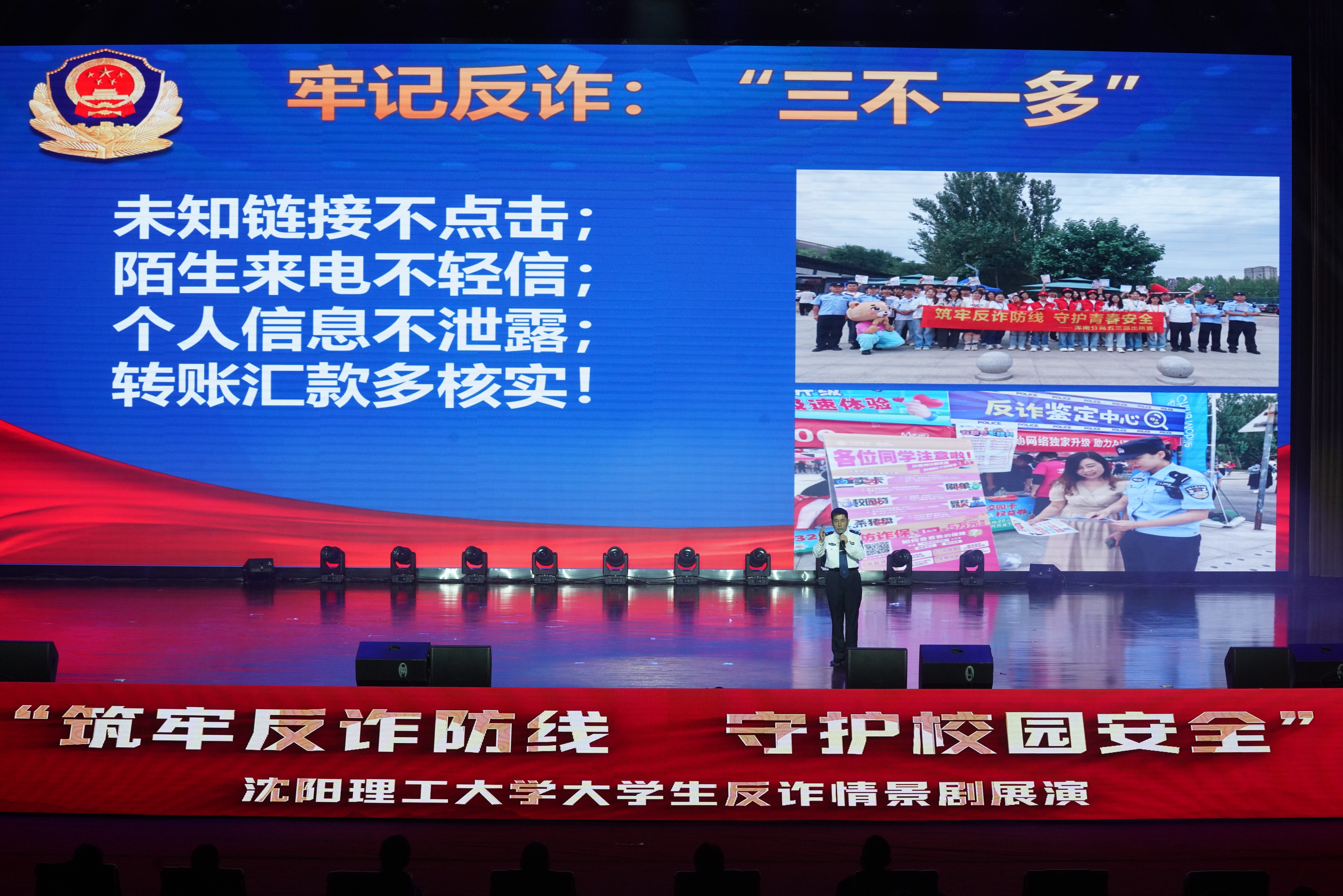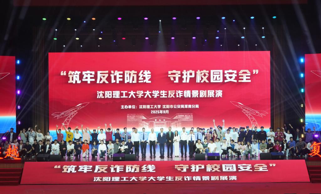 2025年9月22日,沈阳理工大学第二届“筑牢反诈防线 守护校园安全”大学生反诈情景剧展演在艺帆馆成功举办。此次活动由沈阳理工大学与沈阳市公安局浑南分局联合主办,学校党委书记宁先圣、党委副书记张树东出席活动,辽宁省公安厅相关领导、沈阳市公安局浑南分局、五三派出所相关负责人应邀出席,与校内师生共同观摩展演。中层领导干部、学工干部代表、2025级新生近4000余人在现场观看,视频号、抖音、快手等平台同步直播。
