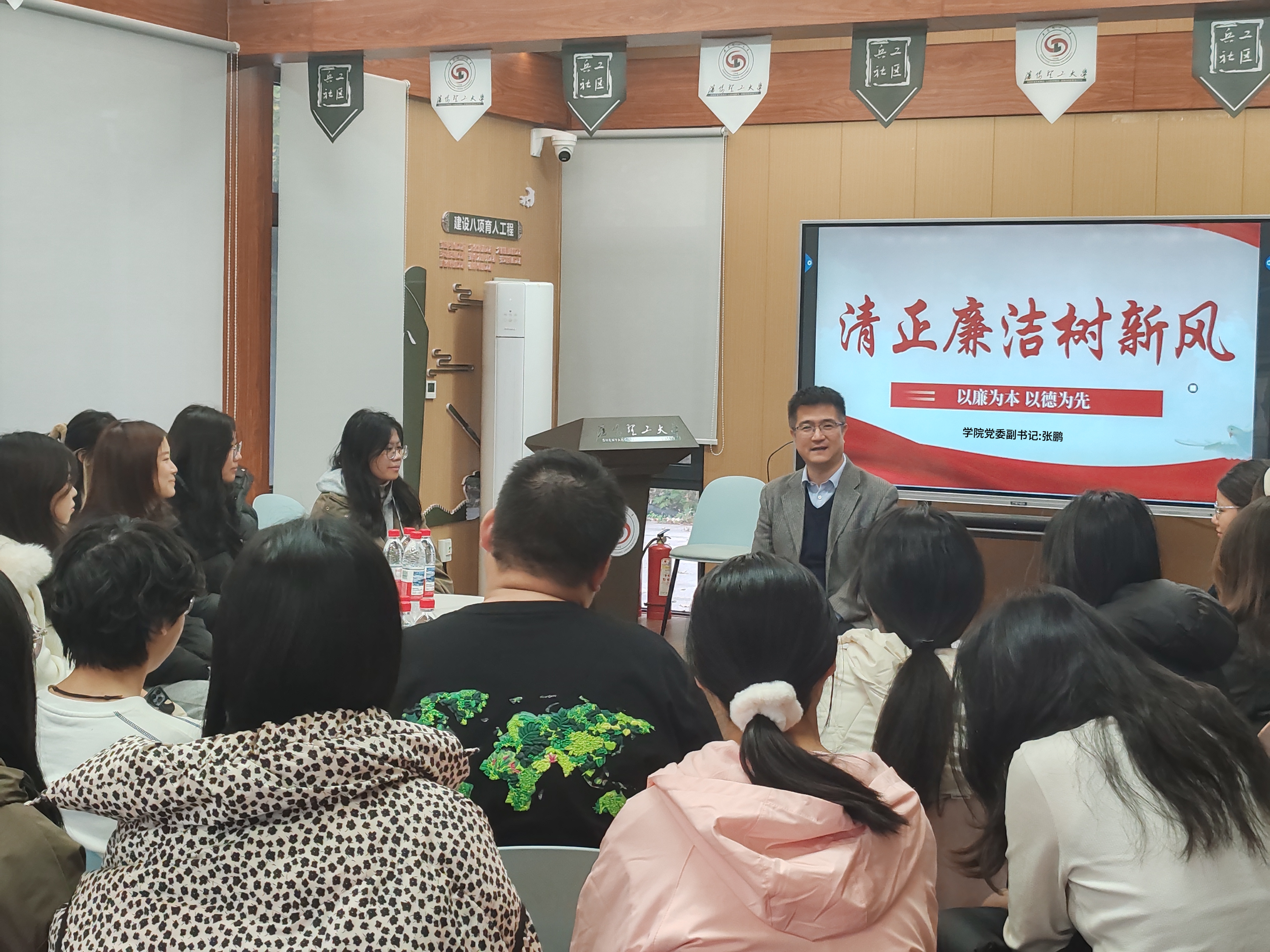 活动现场,学院党委副书记张鹏围绕“清正廉洁树新风”主题开讲,以“以廉为本 以德为先”为核心,结合青年成长实际,通过典型案例强调廉洁自律是青年扣好人生“第一粒扣子”的关键,号召学生从校园点滴做起,树立正确价值观、坚守底线。现场还设置互动交流环节,引导学生思考廉洁对个人与社会的意义。此次活动采用“理论宣讲+互动感悟”形式,为学生带来生动的廉政教育课,助力其在思想根源上筑牢“不想腐”防线,注入廉洁正能量。