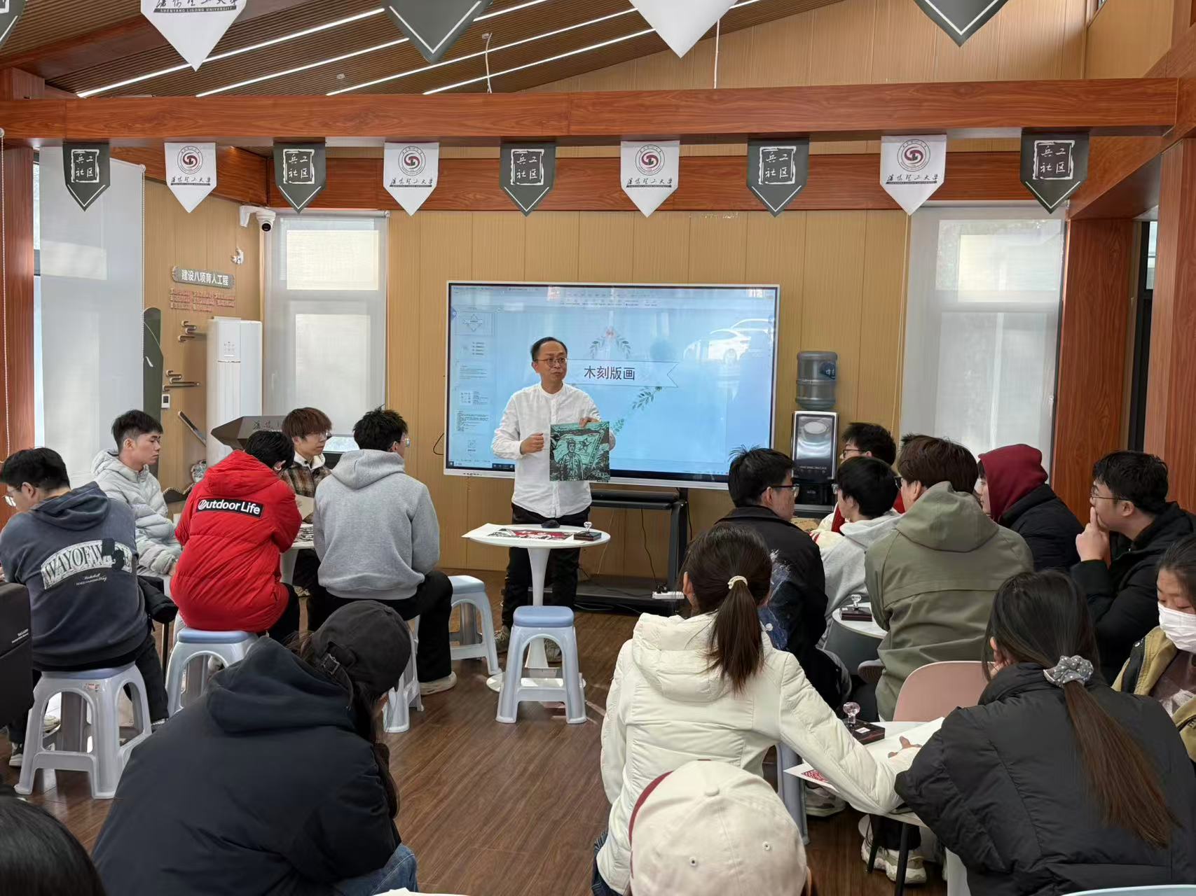 版画传情,美育同行。学校美育部主任陈峰,为学院学生带来木刻版画体验课,让学生在油墨与纸张的碰撞中感受传统艺术的魅力。陈峰详细讲解了版画的历史渊源、种类划分及创作流程,从刻版工具的使用技巧到油墨调配的比例控制,再到拓印时的力度把握,老师逐一示范,并耐心解答学生疑问。在老师的指导下,学生自己动手创作出一幅幅版画作品。活动不仅为学生提供了艺术实践的平台,更以美育为纽带,增强了学生的凝聚力与归属感。