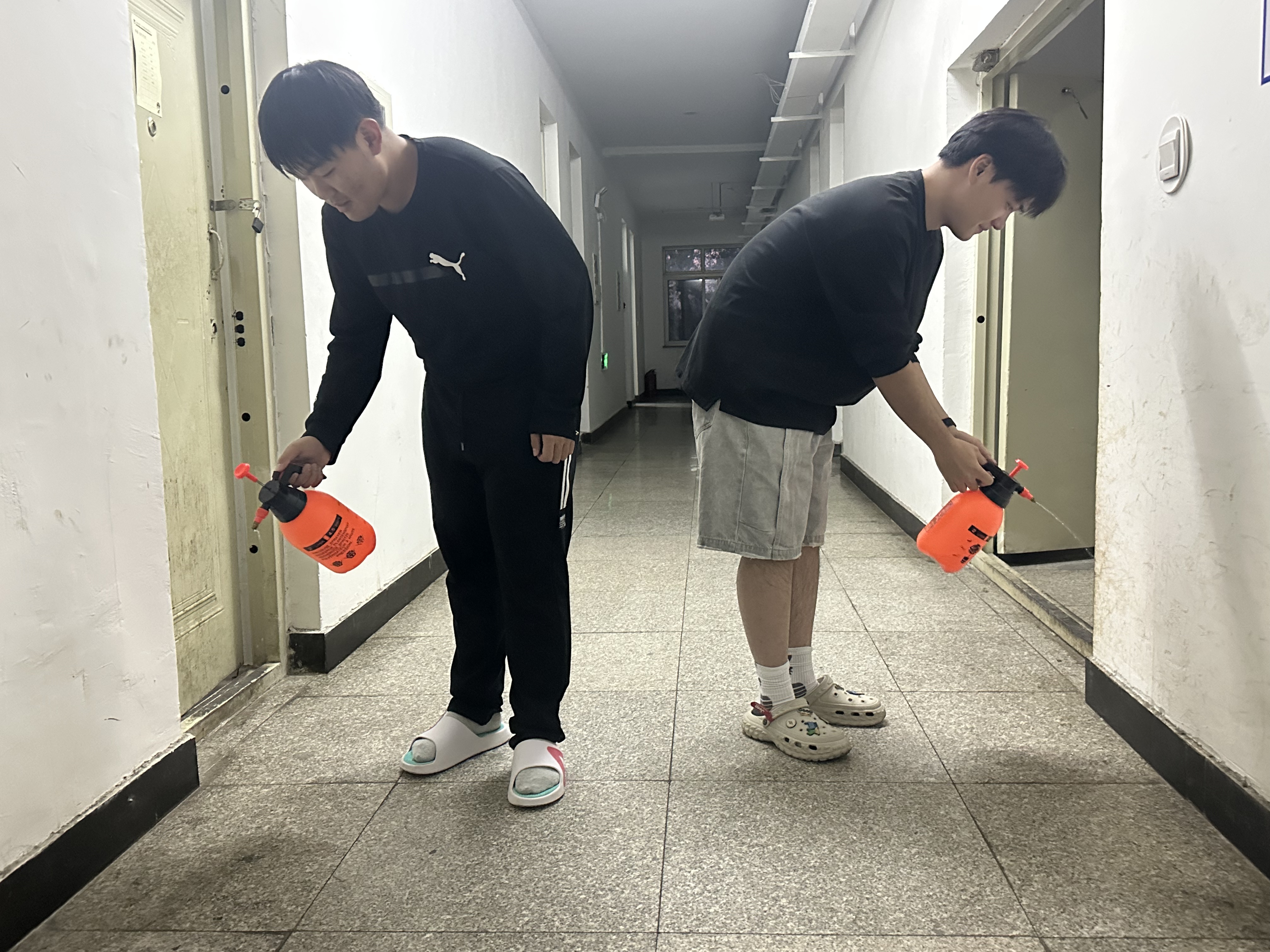 净护寝室,卫你守护。学院利用一站式社区平台,开展“‘净’护寝室,‘卫’你守护”寝室消杀主题活动。学院组织志愿服务队伍对寝室室内、楼道进行全面消杀,用行动为寝室安全“加码”。消杀过程中,同学们相互配合、互帮互助,有人负责擦拭高处物品,有人专注地面消毒,经过大家的共同努力,寝室全面消杀工作顺利完成。同学们纷纷表示,这次活动不仅让寝室环境变得更安全,也增强了大家的卫生防护意识和集体协作能力。