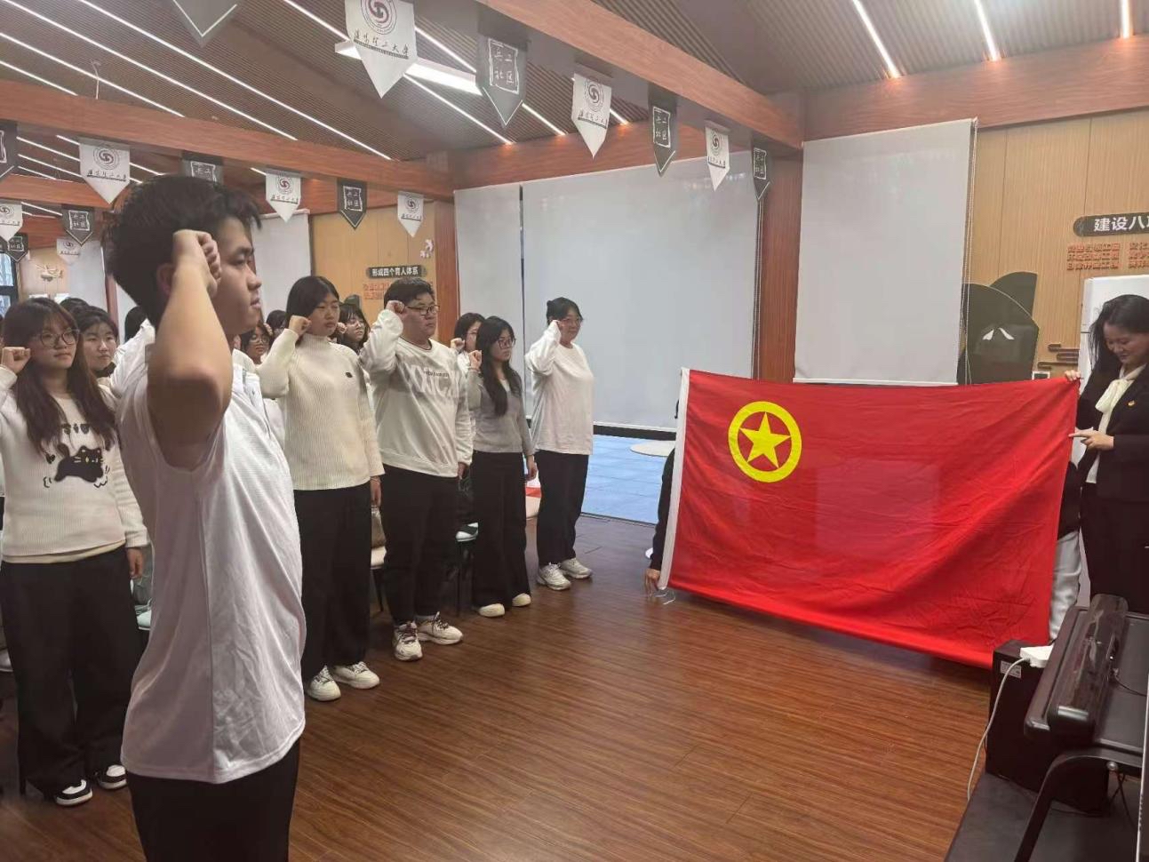 学院于“一站式”学生服务中心隆重举行新发展团员入团宣誓仪式,旨在引导新发展团员坚定理想信念,厚植爱党爱国情怀。仪式开始,26名共青团员高举右拳郑重宣读入团誓词,铿锵誓言掷地有声,尽显青年学子的责任与担当。此次宣誓仪式不仅是一次庄严神圣的精神洗礼,更是一堂深刻的理想信念教育课。活动进一步引导全体新团员铭记加入共青团的光荣时刻,时刻牢记入团初心,自觉履行团员义务,严格遵守组织纪律。大家纷纷表示,将以此次宣誓为新的起点,在今后的学习与生活中,自觉以青春之我、奋斗之我,担起时代赋予的重任,努力将铮铮誓言转化为刻苦学习、服务社会、报效祖国的实际行动。