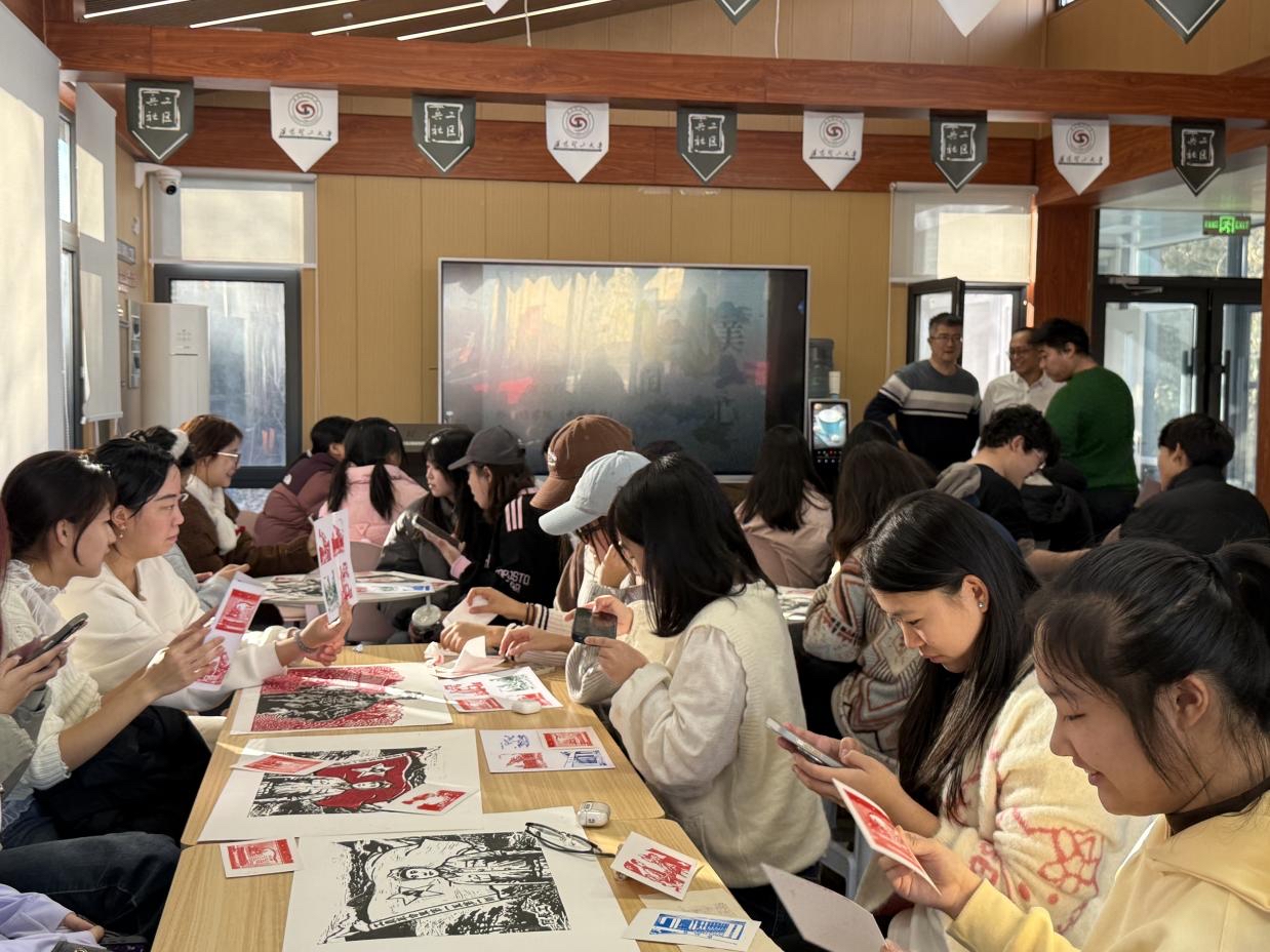 外国语学院(中俄学院)精心策划,组织开展美育主题实践活动,丰富学生精神文化生活,提升学生审美鉴赏能力与人文素养。本次活动以美育赋能成长、用艺术点亮校园为导向,让学生沉浸式感受艺术魅力,涵养人文情怀。活动特别邀请美育部主任陈峰老师及其团队到场指导,聚焦美育浸润理念,以讲做结合的新颖形式,带领学生体验拓印艺术,引导学生近距离感受拓印——这一传统艺术形式的魅力。此次美育主题实践活动,为学生搭建了感受艺术、提升素养的实践平台,助力学生全面发展,为校园文化建设注入鲜活活力。