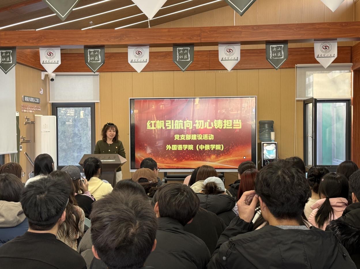 外国语学院(中俄学院)精准谋划、有序推进,扎实开展党支部建设系列活动,切实夯实学院党建工作根基。本次活动聚焦支部凝聚力与战斗力提升,面向学院学生有序开展,以红色精神浸润初心,凝聚青春奋进力量。活动特别邀请学院党委书记孙晔到场分享,围绕党建工作要点与党员使命担当展开讲解,重点解读东北抗联精神核心内涵,引导学院学生进一步坚定理想信念、坚守初心使命,强化责任意识,厚植担当精神。此次党支部建设系列活动,以党建带团建,为学生搭建锤炼品格、坚定信念的学习平台,推动党团共建走深走实,以高质量党建为学院发展注入红色动力,夯实党团建设思想根基。