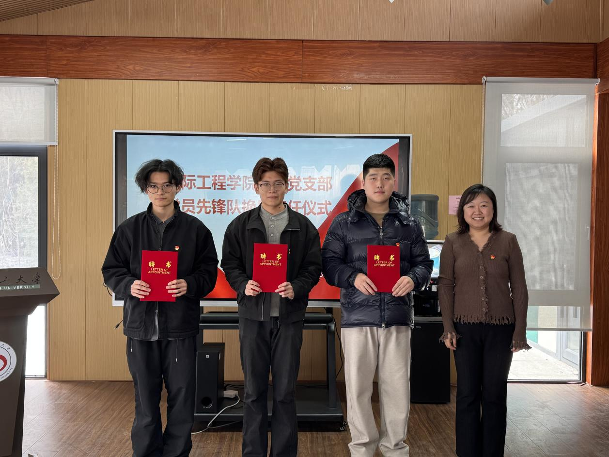 国际工程学院党员先锋队换届聘任仪式在一站式社区庄重举行。仪式上,上一届先锋队负责人回顾了任期内开展的社区志愿服务、学业帮扶、政策宣讲等工作成果,分享了作为党员先锋的责任与感悟;新任负责人作表态发言:“将秉承‘服务同学、锤炼自我’的宗旨,带领党员先锋队在社区治理、学风建设、应急服务等方面主动作为,让党徽在社区一线闪耀。”学生党支部书记王浩州对党员先锋队的工作给予肯定,并要求新一届成员牢记党员身份,发挥先锋模范作用,以实际行动践行初心使命,搭建起党组织联系学生的 “桥梁纽带”。此次换届交接仪式,不仅实现了责任传承,更强化了学生党员的责任意识与服务精神,为“党建+社区育人”模式注入新活力。