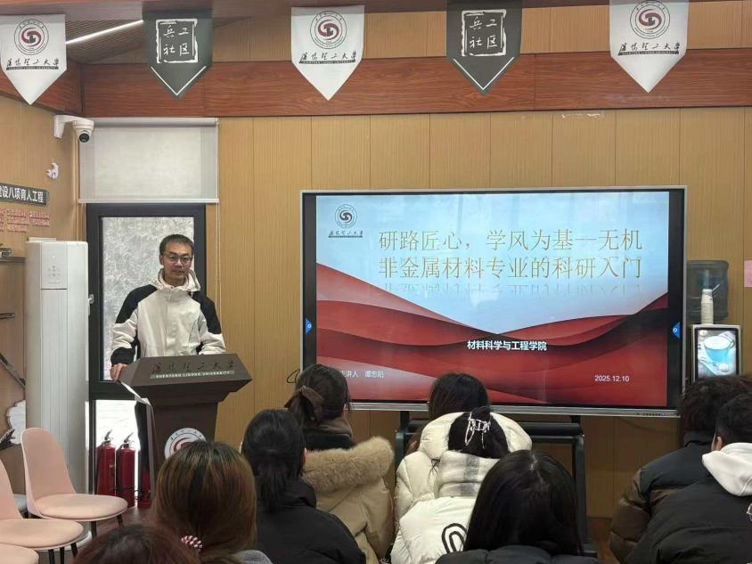 当天,2025级无机非金属材料专业学生与班主任谭忠阳老师的首场科研主题交流会在此开展,近30名新生现场解锁科研“入门密码”。作为班主任的谭忠阳,特意以“萌新视角”设计内容:从“什么是科研”的基础认知切入,结合专业实验室的日常案例,讲解文献阅读、选题观察等入门技能。互动环节里,新生们接连抛出“如何平衡课业与科研兴趣”等疑问,谭忠阳结合自身带班经验耐心回应,现场笑声与笔记声交织。“原来科研不是‘高大上’的遥不可及,班主任的分享让我敢尝试了!”一名新生会后说。这场交流,是学院针对2025级新生定制的学风建设活动,后续学院还将推出“班主任伴学”系列,助力新生锚定学业方向。
