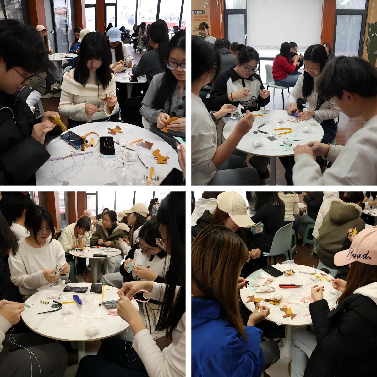 在创作过程中大家或专注琢磨制作细节,或相互交流技巧心得,经过近一小时的努力,在一双双巧手下逐渐变成造型可爱、色彩鲜艳的小飞马挂件。同学们纷纷表示,亲手制作的挂件不仅颜值高,还承载着自己对新年的美好期待。