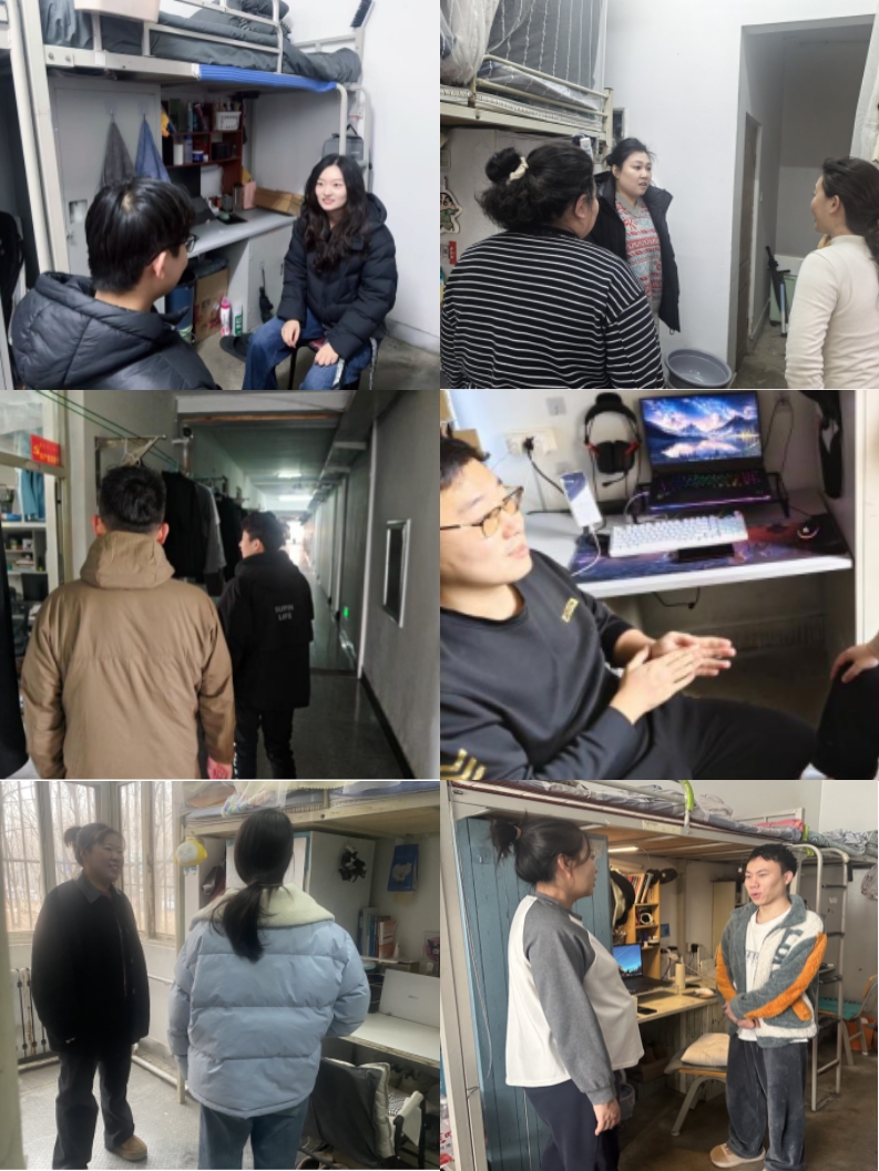 为切实消除宿舍消防隐患,增强学生的安全意识,同时将育人工作做到“家”,材料科学与工程学院当天组织全体辅导员深入学生宿舍,开展了一次以“排查隐患,关怀入微”为主题的综合走访活动。走访过程中,老师们逐一检查消防设施与用电规范,并与同学们围坐而谈,既细致排查风险,也关心大家的学业压力与生活适应情况。辅导员们耐心解答关于宿舍管理、课程选择等方面的疑问,分享安全用电与时间管理的小技巧,叮嘱同学们严守安全底线,同时鼓励大家互帮互助、合理规划大学生活。此次走访将消防安全排查与人文关怀深度融合,不仅及时消除了潜在风险,更传递了学院对每位学子生命成长的全方位关怀,有效营造了安全有序、积极向上的宿舍氛围。