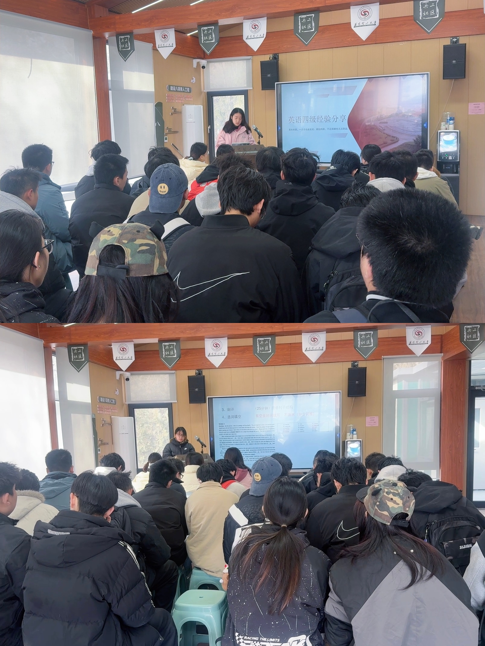 为充分发挥朋辈榜样引领作用,助力学生明确备考方向、提升应试能力,2024级于“一站式”学生社区举办英语四级经验分享会。张文玥、李昵锐两位优秀学生代表担任主讲,结合自身的实战经历,系统分享了词汇积累、听力训练、阅读技巧及写作翻译等模块的实用学习方法,并详细讲解考试流程与时间分配策略,为在场同学精准“点迷津”。分享会现场气氛热烈,同学们认真聆听、积极提问,两位主讲人耐心解答备考困惑,传递备考信心与经验智慧。此次活动不仅有效提升了学生的应试能力,更在年级内营造出勤学善思、互帮互助的优良学风,展现了朋辈领航的示范带动作用。
