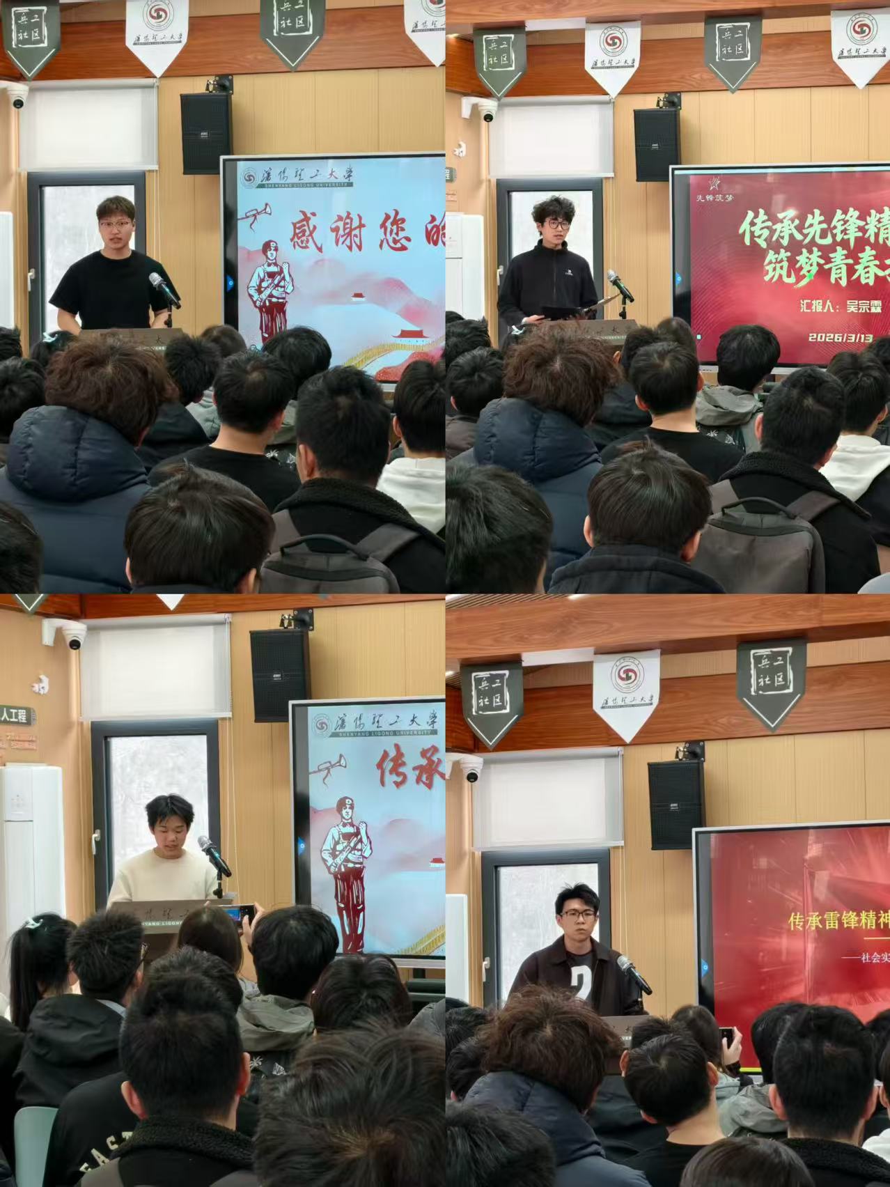 分享环节中,汽脉宏材实践团队长闫志远同学结合专业特色与实践经历,讲述了赴长春一汽开展实地参观学习、走访慰问企业老员工的实践故事;观云筑梦实践团张登杰同学分享了在丹东实践中扎根基层、服务社会的实践历程,生动讲述在调研走访、科普服务中践行青年责任的鲜活故事;先锋筑梦实践团吴宗霖则围绕常态化志愿服务展开交流,分享在日常服务中坚守初心、默默奉献的心得体会。此次雷锋精神主题宣讲会的顺利开展,进一步引导材院青年将雷锋精神内化于心、外化于行,用实际行动讲好新时代雷锋故事,让奉献与担当成为青春最亮丽的底色。
