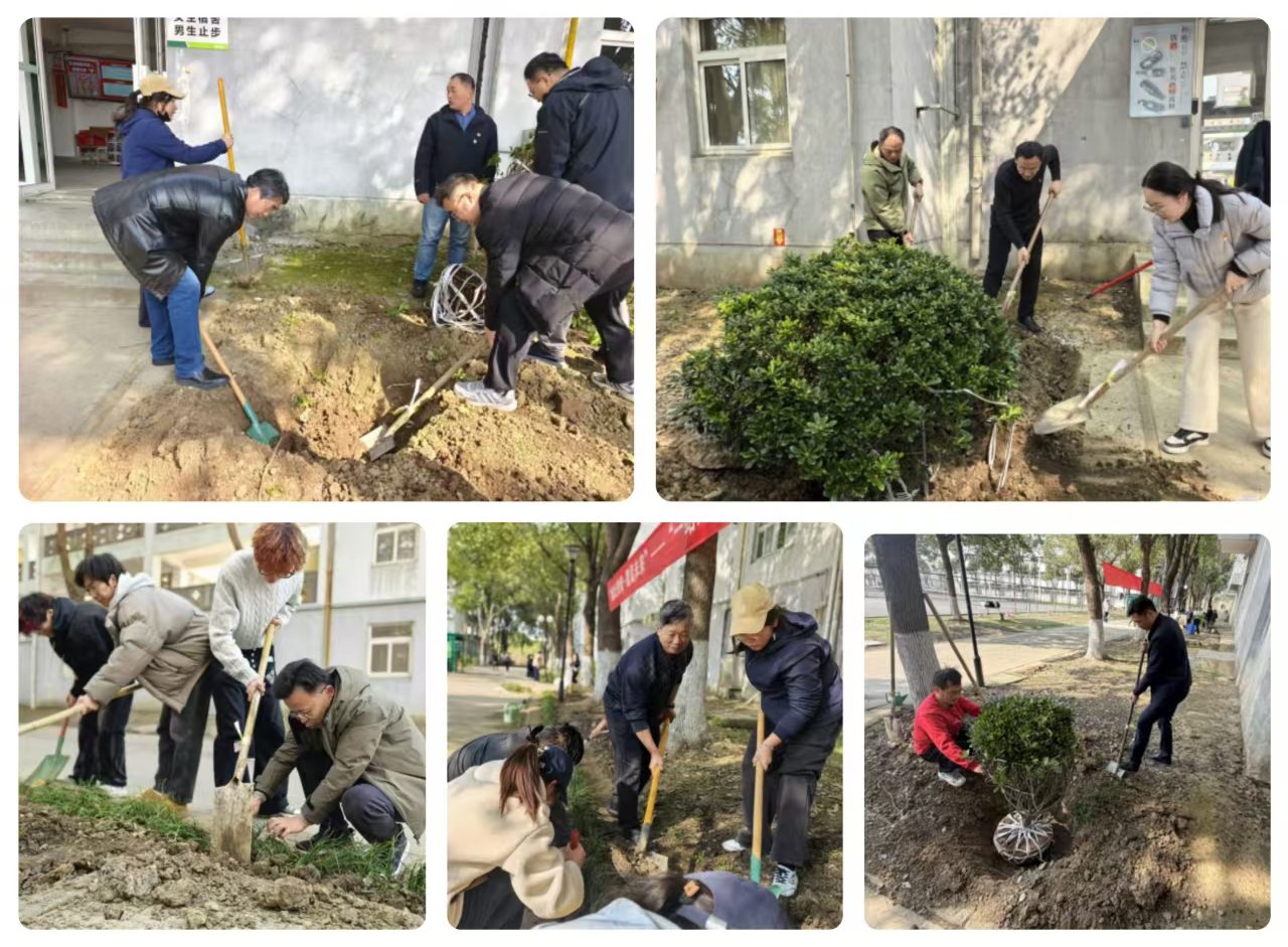随后,师生们按照划分区域,有序奔赴各宿舍楼栋种植点位。挥锹铲土、扶苗填坑、提水浇灌……大家分工协作、干劲十足,现场一派热火朝天的劳动景象。在共同努力下,一棵棵新苗错落有致、迎风挺立,为“一站式”学生社区增添了盎然生机,也让师生在团结协作中感悟劳动之美,厚植生态情怀。