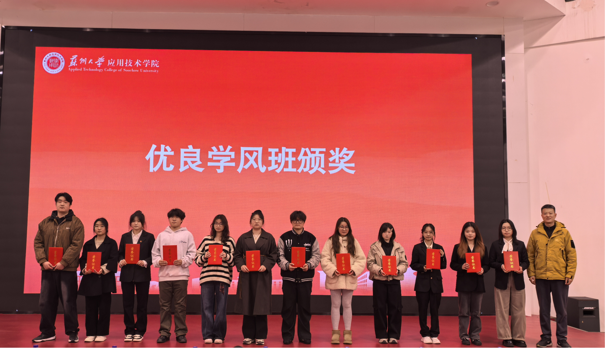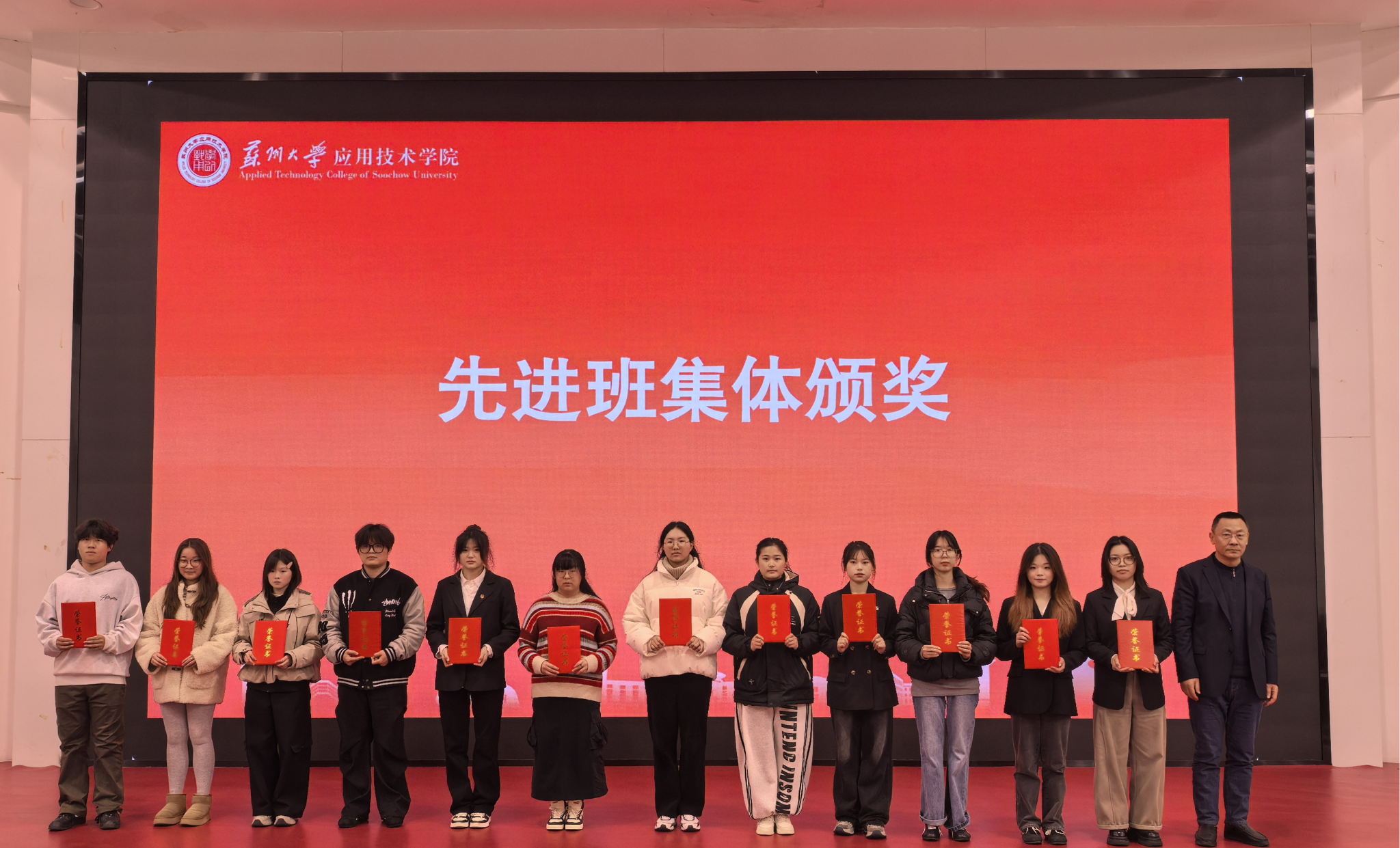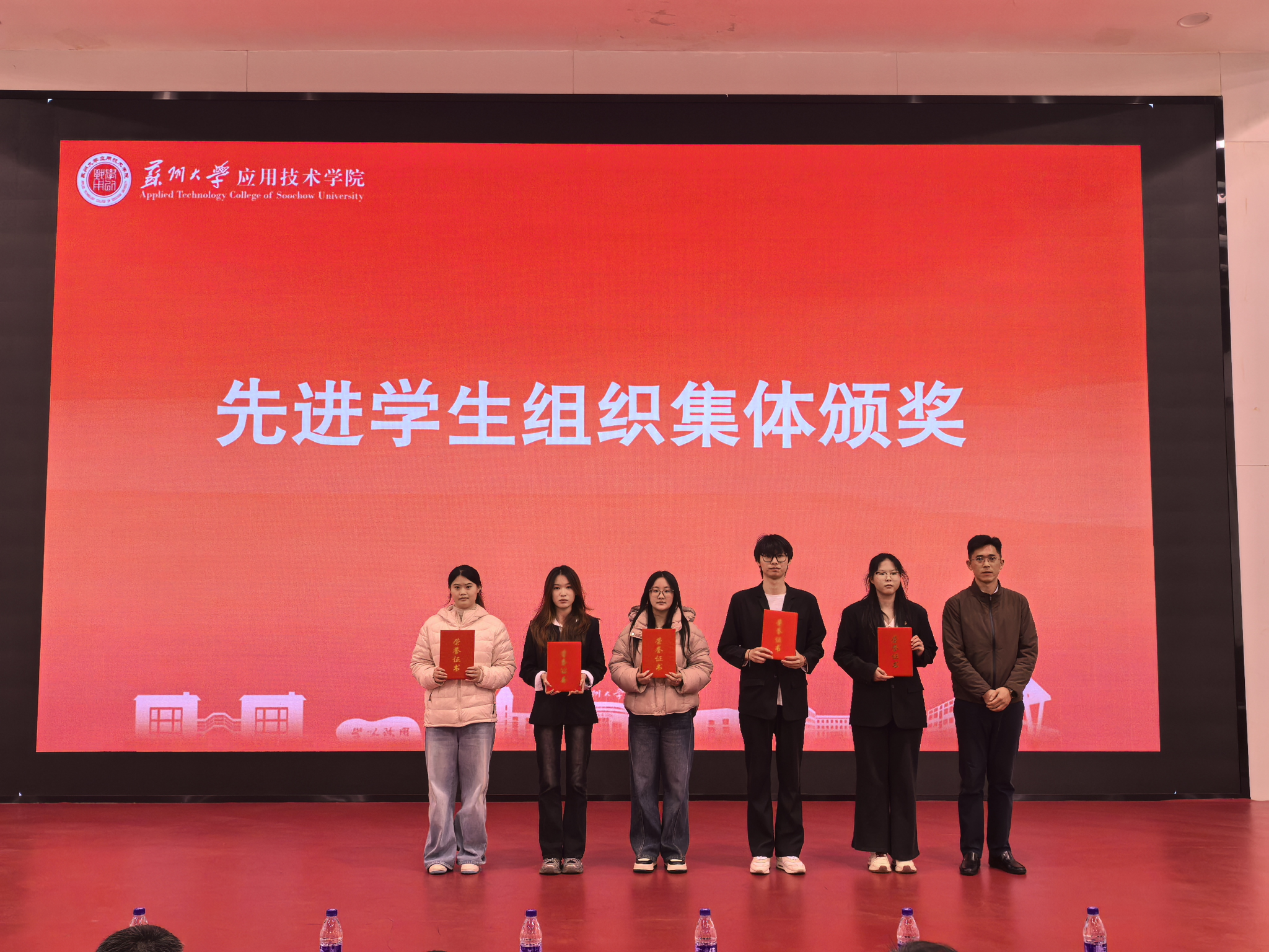 大会在庄重而热烈的氛围中拉开帷幕。首先对2025年度在学风建设、班集体建设及学生组织建设中表现突出的先进集体进行表彰。李响、严永伟、席拥军分别为获奖集体颁发荣誉证书,充分肯定他们在推动优良学风、凝聚集体力量方面所取得的积极成效。