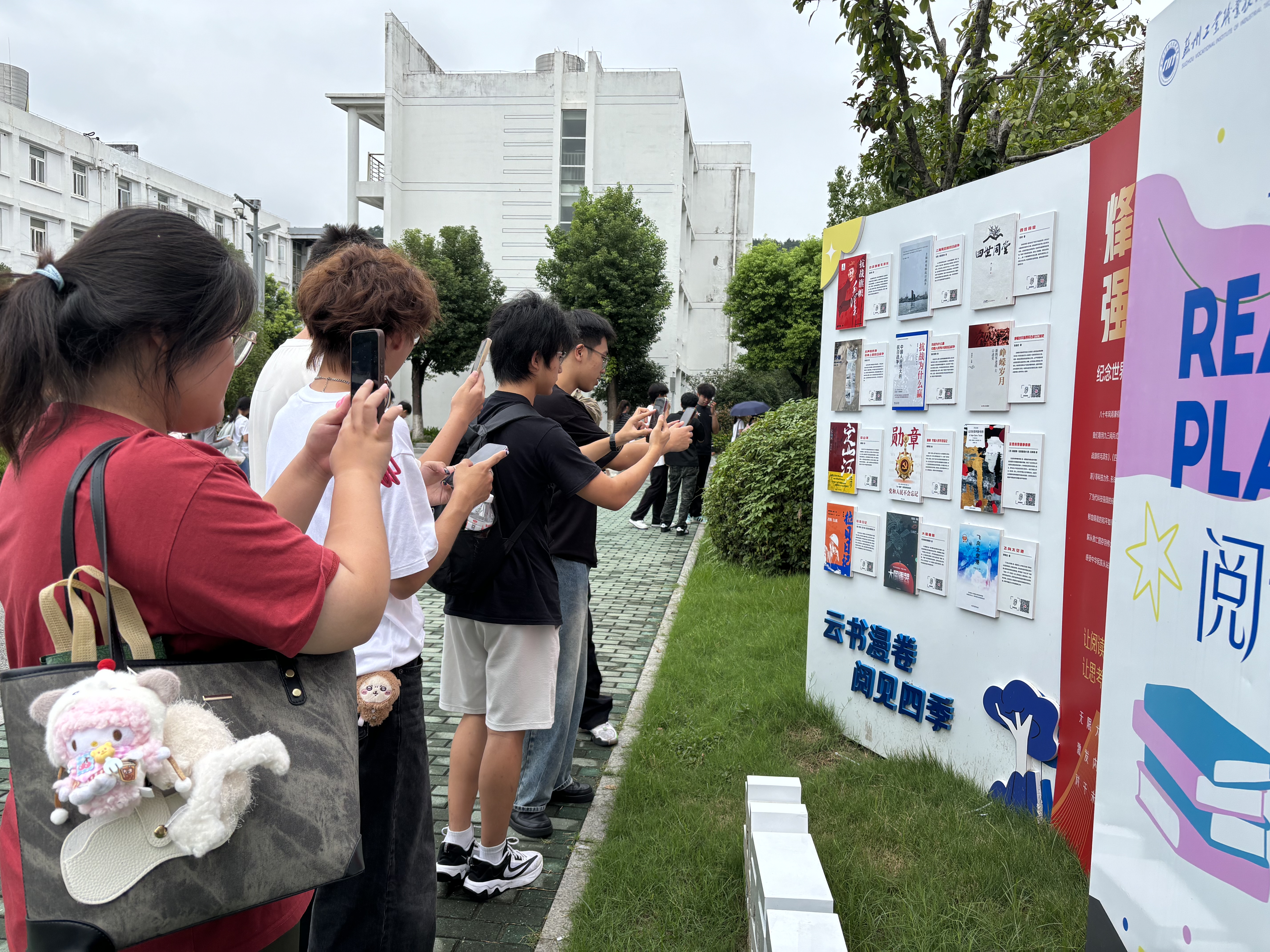 国庆期间,学生工作部联合数字图书馆中心推出“烽火荣光·强国征程”——纪念世界反法西斯战争胜利80周年专题荐读活动。作为“云书漫卷,阅见四季”书香社区阅读计划秋季特别策划,该活动通过立体化场景设置,将革命先辈百折不挠的坚定信念与浴血奋战的牺牲精神有机融入学生日常生活。师生可在“一站式”学生社区广场的书香社区专区,通过极具创意的立体书页阅读景观扫码获取书单,在沉浸式体验中感悟红色精神。