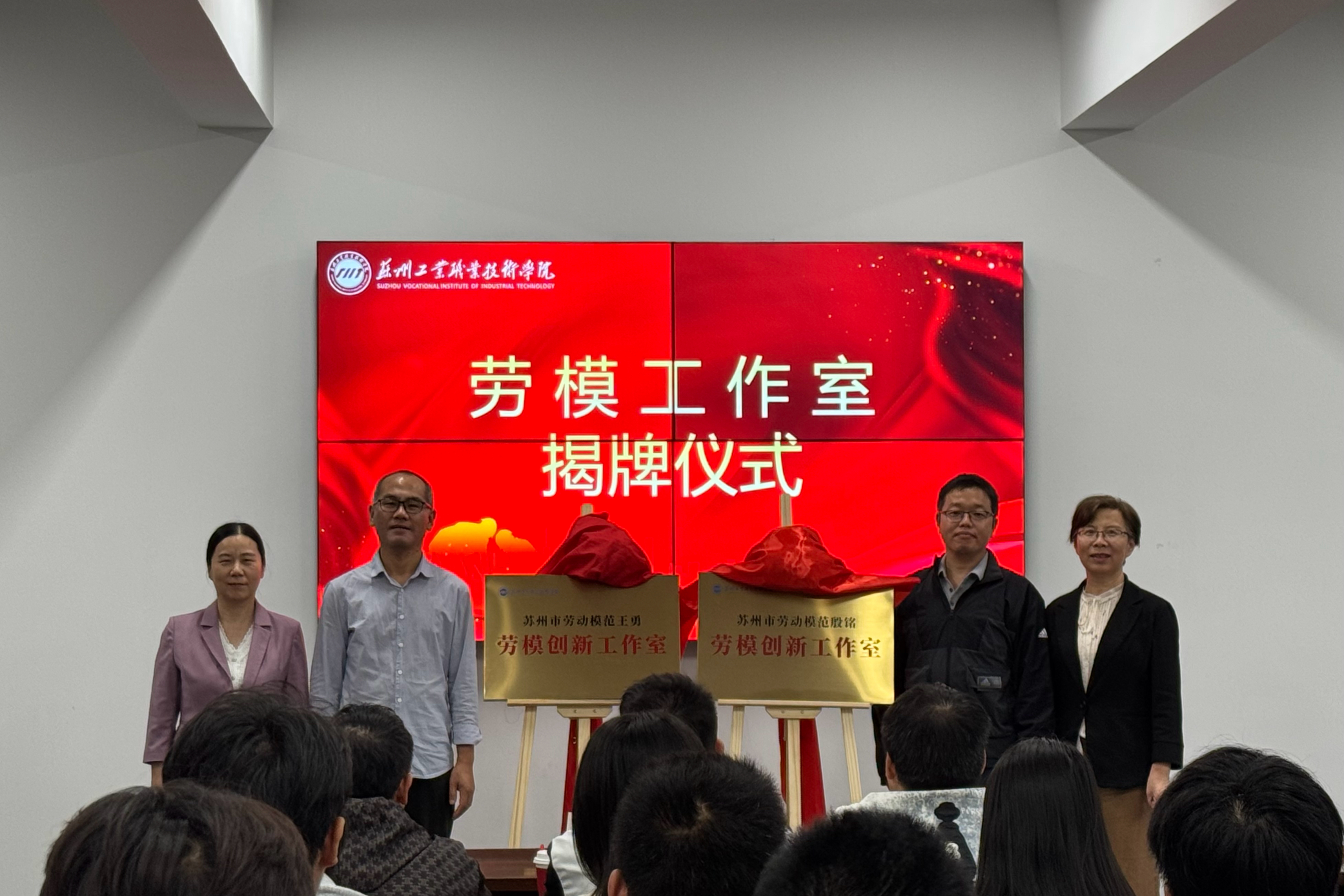 为大力弘扬劳模精神、劳动精神、工匠精神,10月20日下午,校劳模创新工作室揭牌仪式暨劳模讲座活动在天巧楼举行。校工会主席安婕,精密制造学院党总支书记周瑾、党总支副书记汪宁、工会主席沈小强,江苏省五一劳动奖章获得者、苏州市劳动模范王勇教授,江苏省技术能手、苏州市劳动模范殷铭教授及精密制造学院25级学生代表参加此次活动。活动由孙兆艺老师主持。