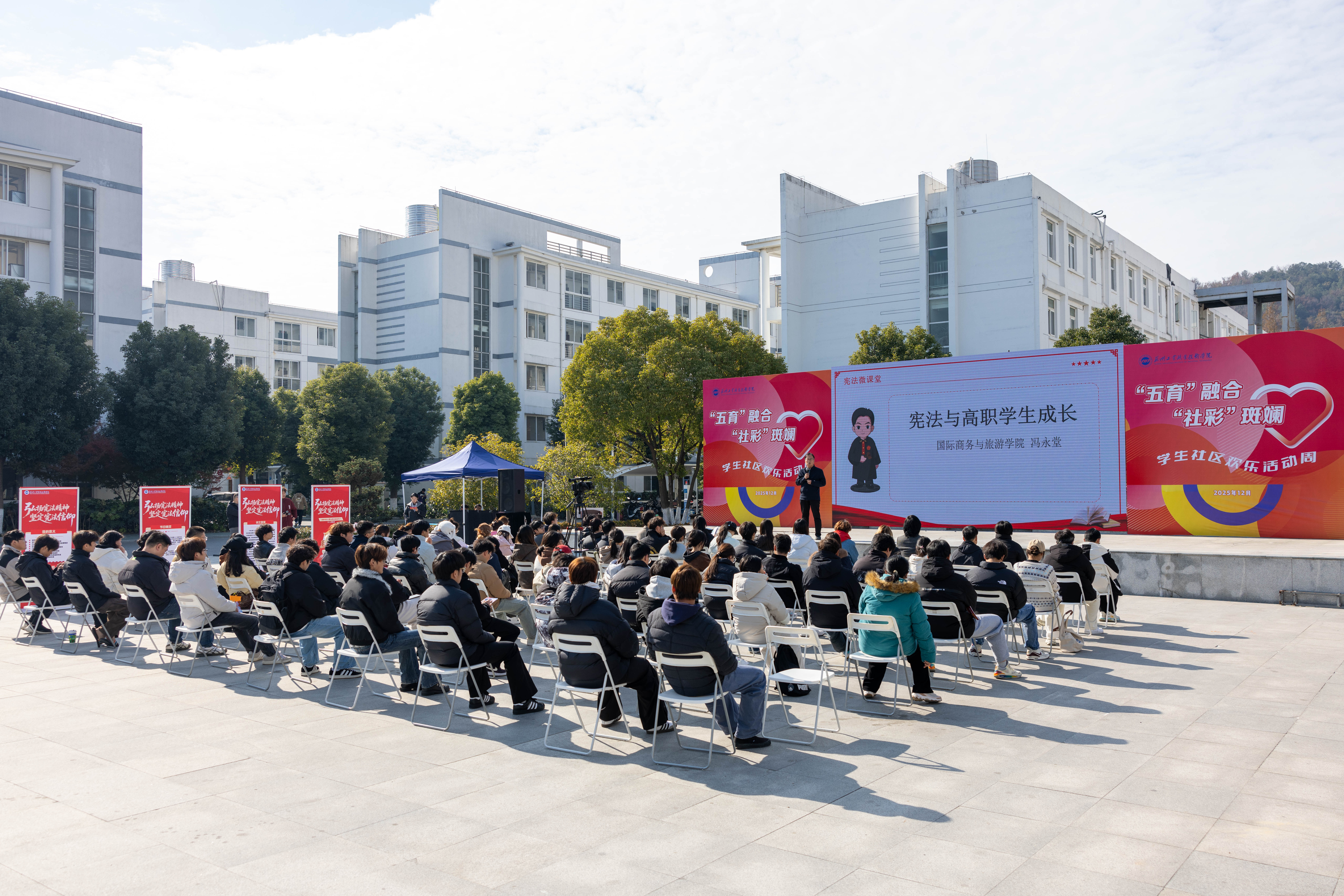 为深入学习宣传宪法知识,弘扬宪法精神,增强青年学生的宪法意识与法治观念,12月4日中午,由学生工作部(处)主办,国际商务与旅游学院承办的“尊宪于心 守宪于行” 宪法教育主题活动在 “一站式” 学生社区广场成功举办。