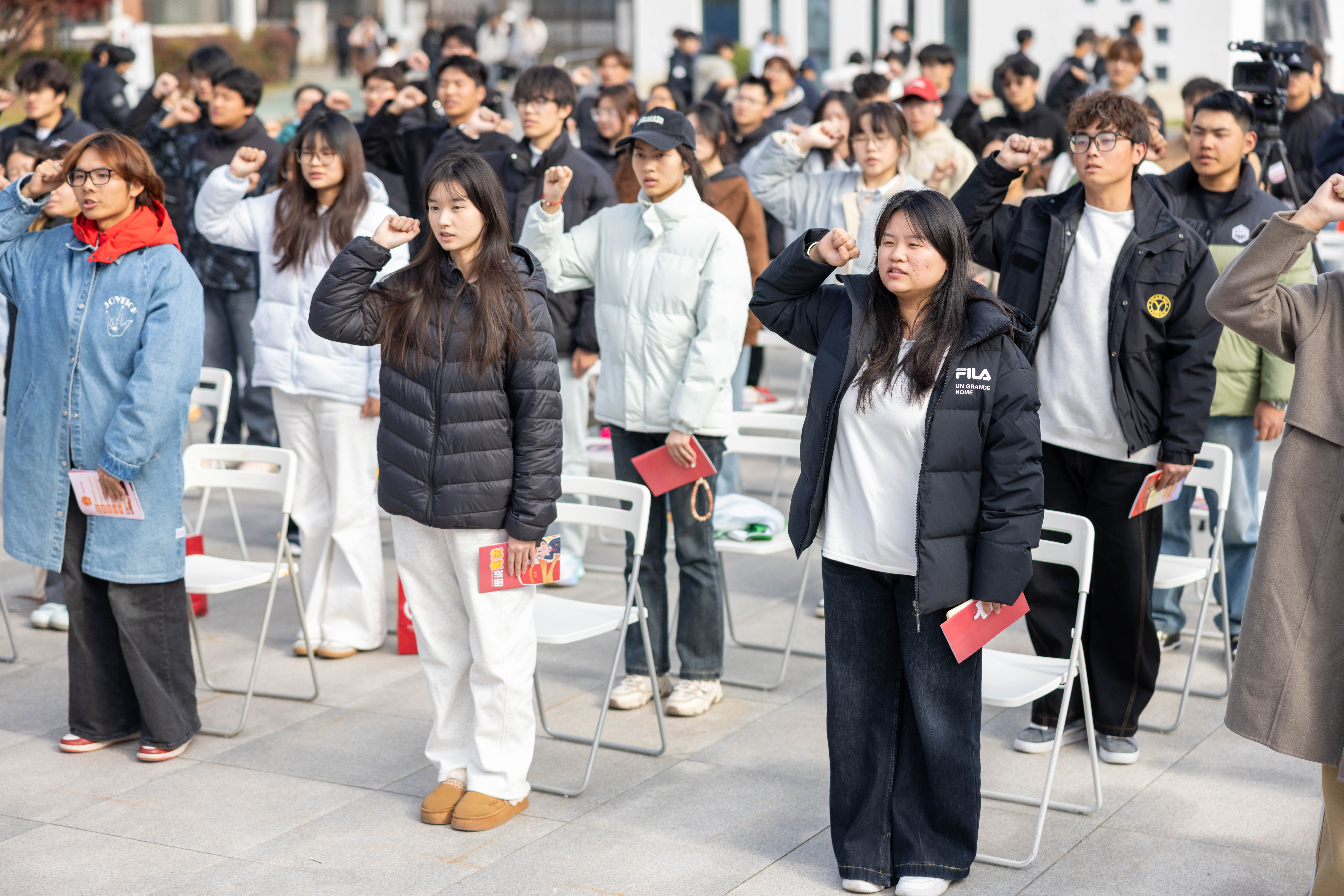 宪法内容诵读传递出同学们对宪法文本的敬畏之心,让大家直观感受宪法的严肃性与权威性。《宪法与我们如此亲近》普法短视频进一步加深了同学们对宪法知识的理解。宪法知识答题环节,参与者们踊跃参与、积极应答,在轻松互动中巩固了宪法基础知识。集体宣誓仪式上,全体参与者在领誓人的带领下庄严宣读宪法宣誓词,铿锵有力的誓言彰显了青年学子遵守宪法、维护宪法的坚定决心。