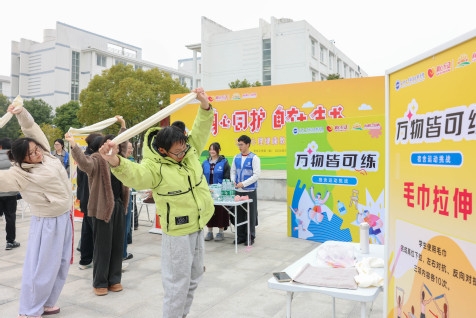 “万物皆可练”宿舍运动挑战活动指导学生巧用水瓶、毛巾、椅子、书本等宿舍常见物品开展微运动。现场设置多个趣味挑战项目,水瓶弯举练手臂,毛巾拉伸舒颈背,顶书缓走塑体态……简单易学、随时可练的微运动,让学生们眼前一亮。集成电路与通信学院丁丽敏同学参与活动后感慨,“原来运动也不必依赖专业器械,宿舍里随处可见的小东西都可以成为我们锻炼的工具”。运动激活后,同学们还参与手作放松。大家在现场或亲手制作一管特色水培景观,或沉浸于艾草锤的手作过程,从身体到心灵,在挥汗与手作中,收获双重放松。