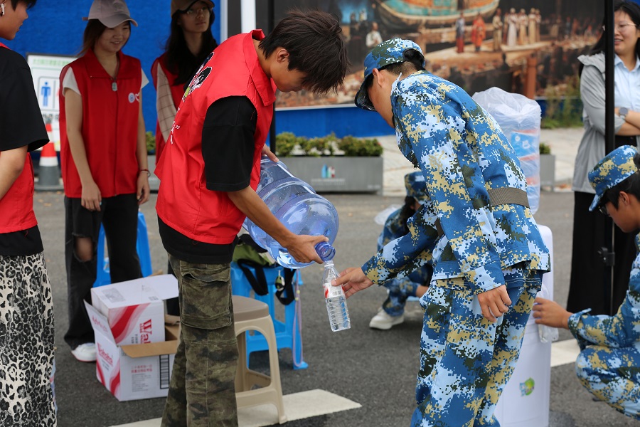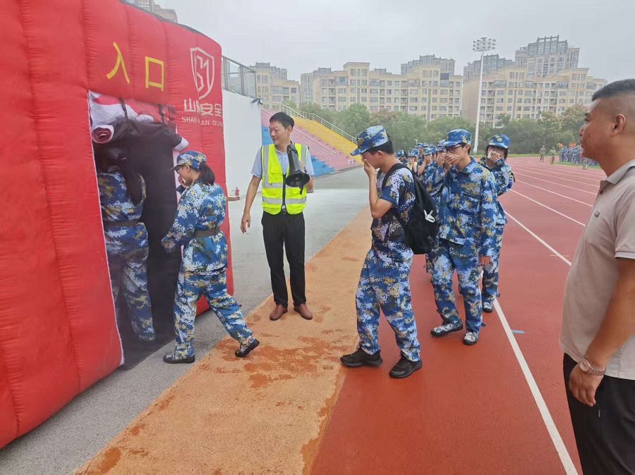 除常规训练外,本次军训还精心设计了多项特色活动:7.5公里校外拉练、“军歌嘹亮,砺剑青春”主题拉歌比赛等项目。9月20日,学院还针对2025级新生开展了应急疏散演练。这些活动既增强了军训的趣味性和感染力,也进一步弘扬了爱国主义精神,彰显了青春朝气,同时普及了应急避险知识,切实提升了学生在突发事件中的自救与互救能力。