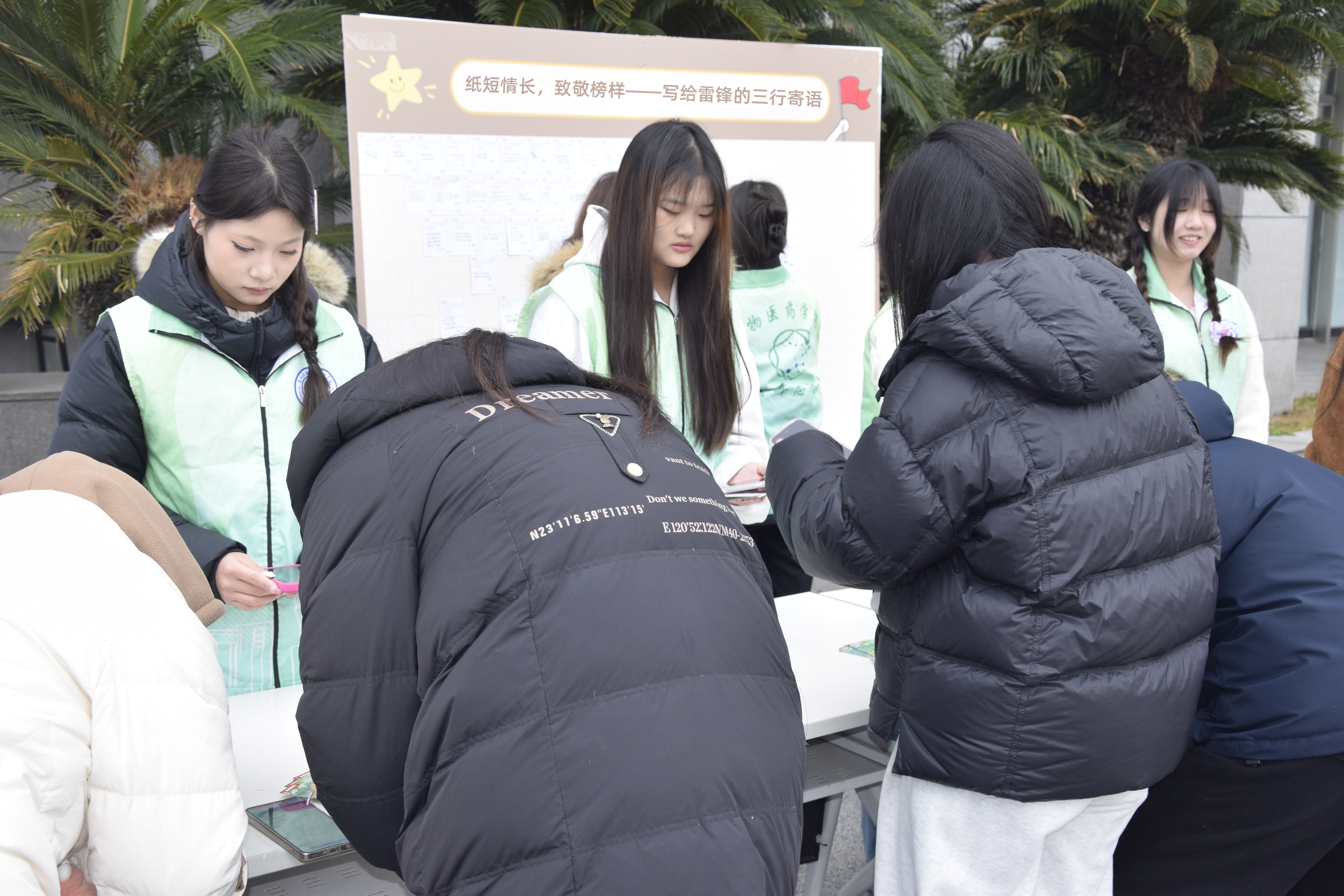 “纸短情长——写给雷锋的三行寄语”活动温情上线。同学们以笔为介、以字传心,将对雷锋同志的崇敬与对奉献精神的体悟凝练成三行短章。字里行间满含向上向善的赤诚,传递着爱岗敬业、助人为乐、无私奉献的精神内核,在真挚表达中厚植家国情怀,让经典精神在新时代青年的心声里焕发鲜活光彩。