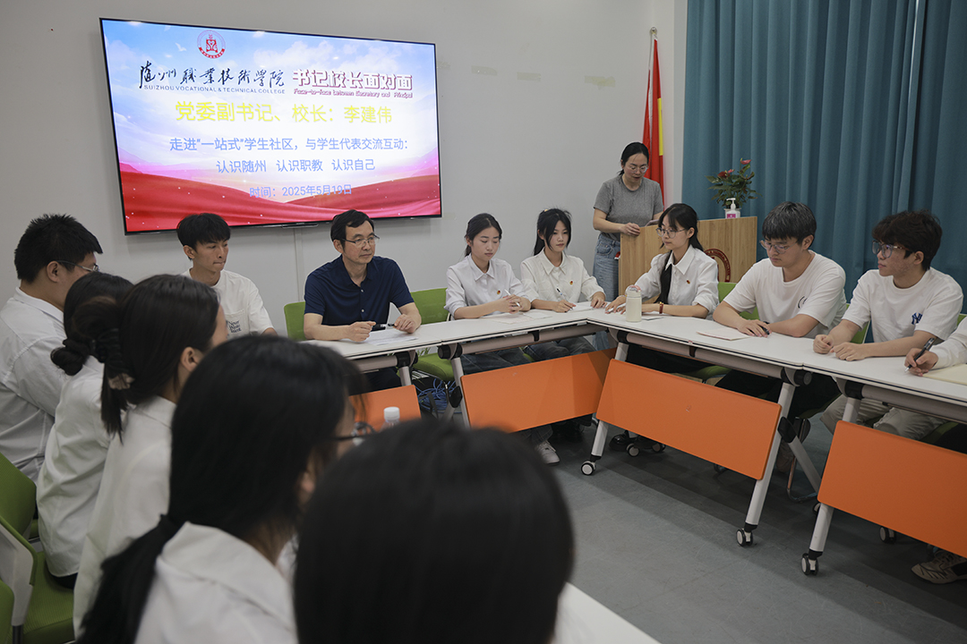 5月19日下午,党委副书记、校长李建伟深入学校“一站式”学生社区走访调研,与师生代表座谈交流,围绕职业教育使命、学生成长成才等话题展开深入探讨。党委学生工作部、党委宣传(统战)部、护理学院、香菇学院相关负责人及40余名学生代表参加活动。