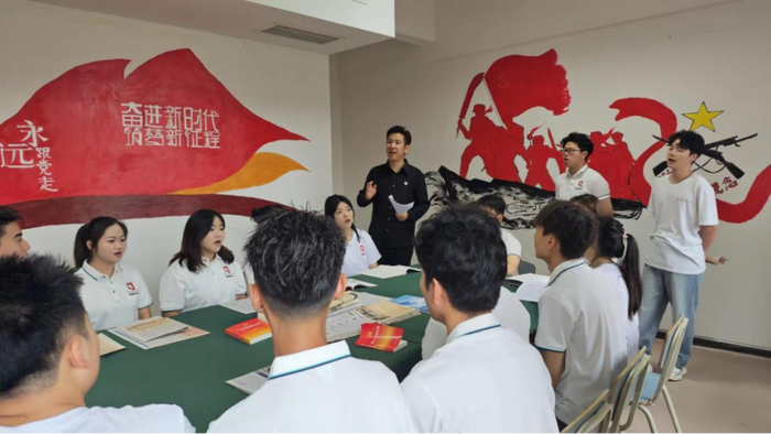 红色文化铸魂。学校通过空间再造将思政元素转化为可感知的文化符号,构建浸润式学生社区思政教育模式。在学生社区服务中心打造“红色文化长廊”,将“中国共产党人精神谱系”内容上墙、上屏,以时间轴动态展示百年党史辉煌历程。以“红军长征在贵州”为主线打造爱国主义教育“一廊四馆”,展示遵义会议、黎平会议、四渡赤水等历史事件,让学生在学习、生活和办事过程中无形地接受教育。学生社区引入“红色金融史”主题策展,开展“理论宣传二人讲”进社区、“小小马宣讲团”进社区等活动,打造具有“红色+财经”特色的财经高校社区文化,将理论学习转化为具象化的文化浸润。