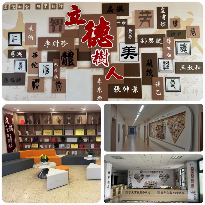 环境和顺和美。“当归苑”“徽音馆”“君健堂”,一个个散发浓郁“中医药”味的楼宇、道路、景观、功能房,形成“一楼一景”“一院一品”文化链条。通过环境美化、植被绿化、楼宇亮化工程,以党史知识、校史典故、中医经典、文明标语,在学生社区播种下传承创新发展中医药的种子。
