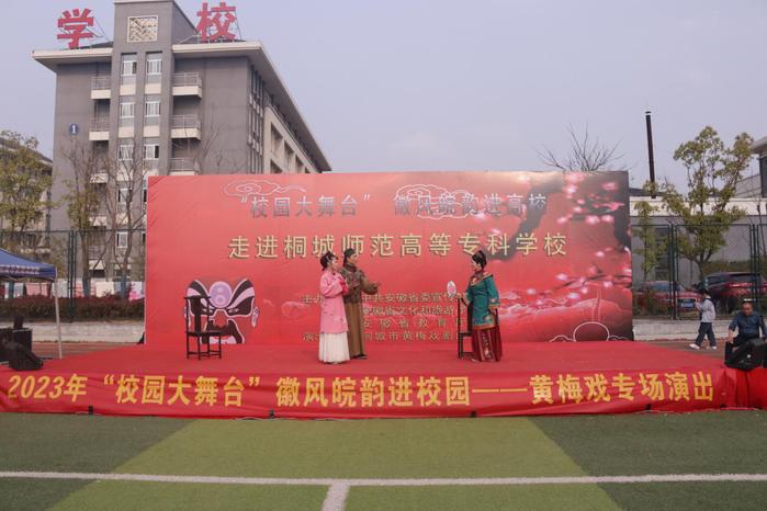 4月1日,由省委宣传部、省教育厅、省文化和旅游厅共同主办,桐城市黄梅戏剧团承办的“2023年校园大舞台——徽风皖韵进高校”活动在我校操场举行,2000余名师生共同观看了此次演出。