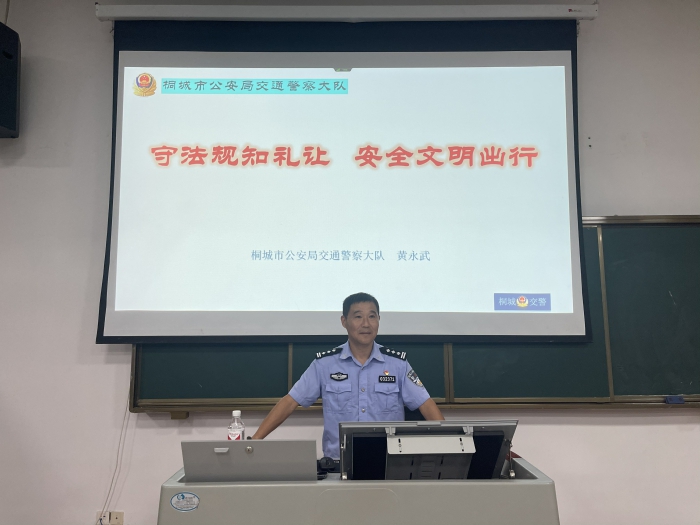 桐城市交警大队黄永武首先为同学们系统解读了《中华人民共和国道路交通安全法》,随后从行走、乘车等细节入手,给出了实用的安全出行建议。在最后的事故案例剖析环节,他将一幕幕悲剧情景再现,用鲜活的案例让同学们深刻领悟到:交通法规不仅是纸上的条文,更是守护生命的盾牌。