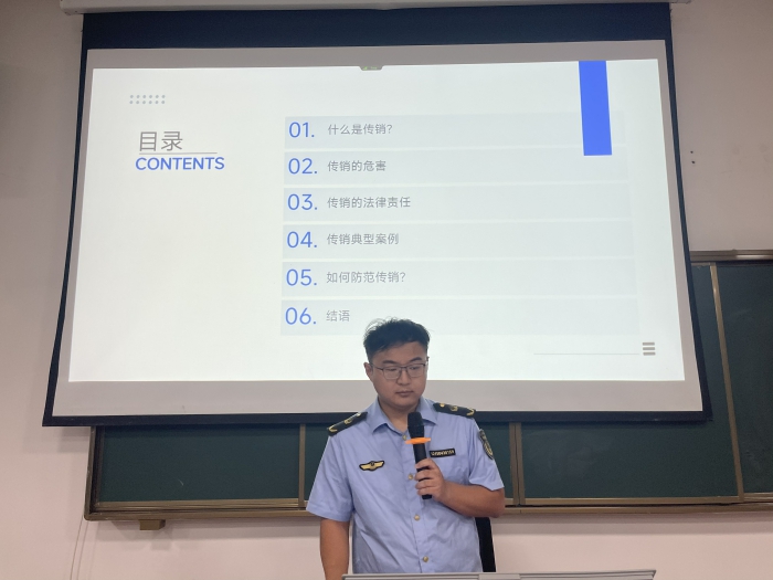 桐城市市场监督管理局张志鹏从什么是传销、传销的危害、传销的法律责任、传销典型案例、以及如何防范传销等5个方面详细叙述了传销的特点以及危害,并结合现实案例,给同学们带来了一场别开生面的公开课。
