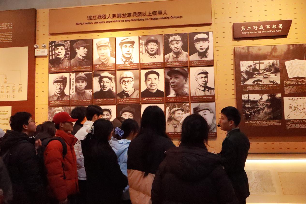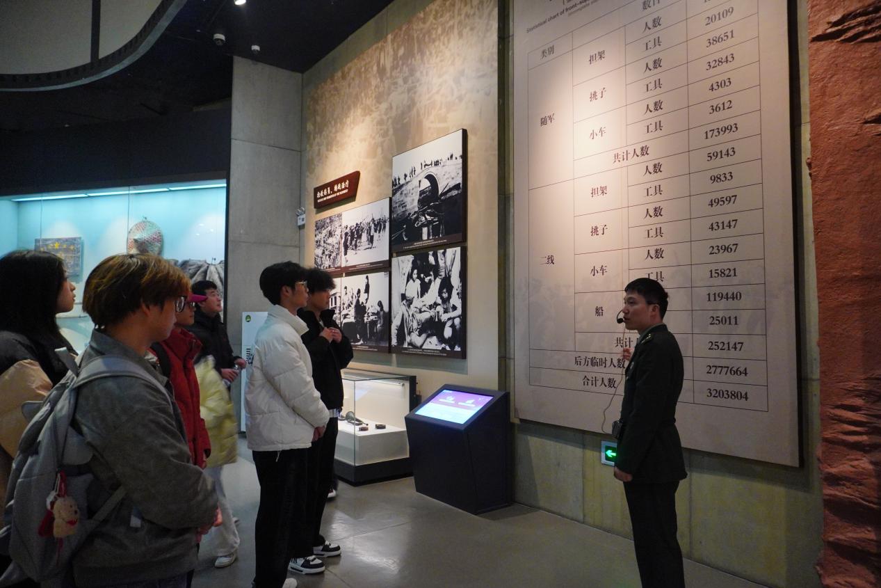 告别法治教育基地,师生们怀着对革命先辈的崇敬之心,奔赴本次实践的第二站——渡江战役纪念馆。踏入庄严肃穆的场馆,时光仿佛回溯至70余年前那个硝烟弥漫、千帆竞渡的革命年代。在讲解员的深情讲述中,师生们循着历史足迹,重温百万雄师过大江的英雄壮举,深切感受革命先辈不怕牺牲、奋勇争先的崇高气节,深刻领悟“不畏艰险、一往无前”的渡江精神。24财税2班钟磊同学在参观后感慨:“今天的幸福生活来之不易,是无数革命先烈用鲜血和生命铺就的。作为新时代青年大学生,我们不仅要铭记这段峥嵘历史,更要将先辈的奋斗精神融入学习生活,以青春之我勇担时代之责,绝不辜负时代的重托。”