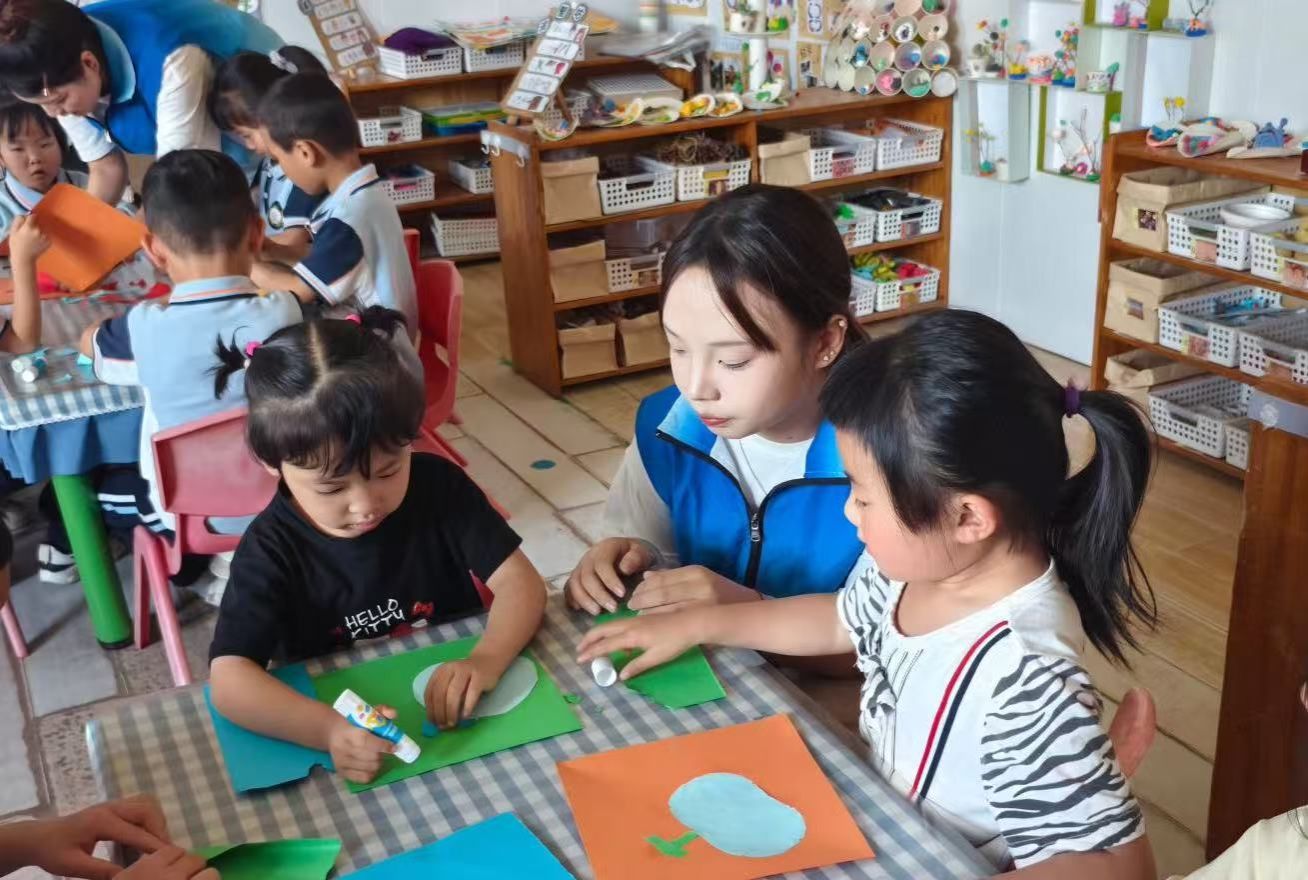 近日,我院学前教育专业的学生们走进耀州区小丘镇中心幼儿园,开展“童创非遗,润土计划”交流活动,活动中,学生们化身“幼儿教师”,为小丘镇中心幼儿园中班的孩子们带来了一堂生动的团队主题剪纸课程,幼儿园的孩子们积极参与、创意频出,不仅锻炼了动手能力,也体验了传统剪纸艺术带来的乐趣。