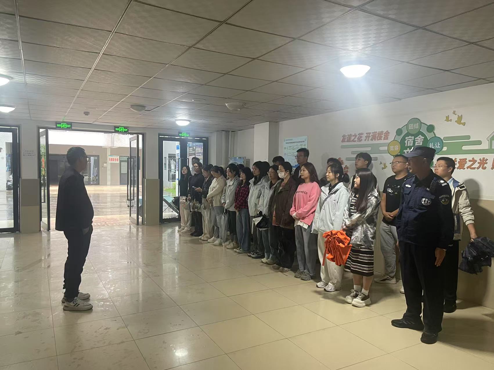 2025年4月29日上午学工部副部长兼公寓中心主任黄均,保卫处老师、物业老师、各学院学工干事、辅导员分组对学生社区-学生寝室进行五一小长假前的检查和观摩。