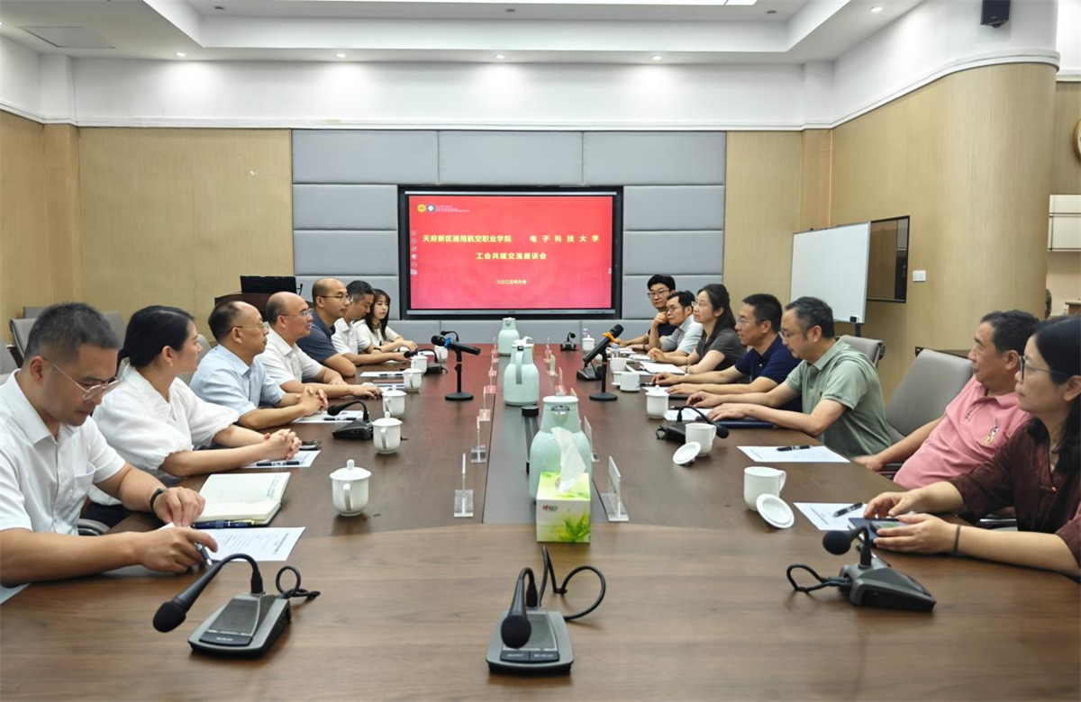 交流会上,双方聚焦四川省无人机学院建设进展、无人机专业课程体系构建、“产学研用” 协同育人机制等方向展开研讨。陈晓辉介绍了天府新区通用航空职业学院在通航人才培养、实训基地建设等方面的实践经验。