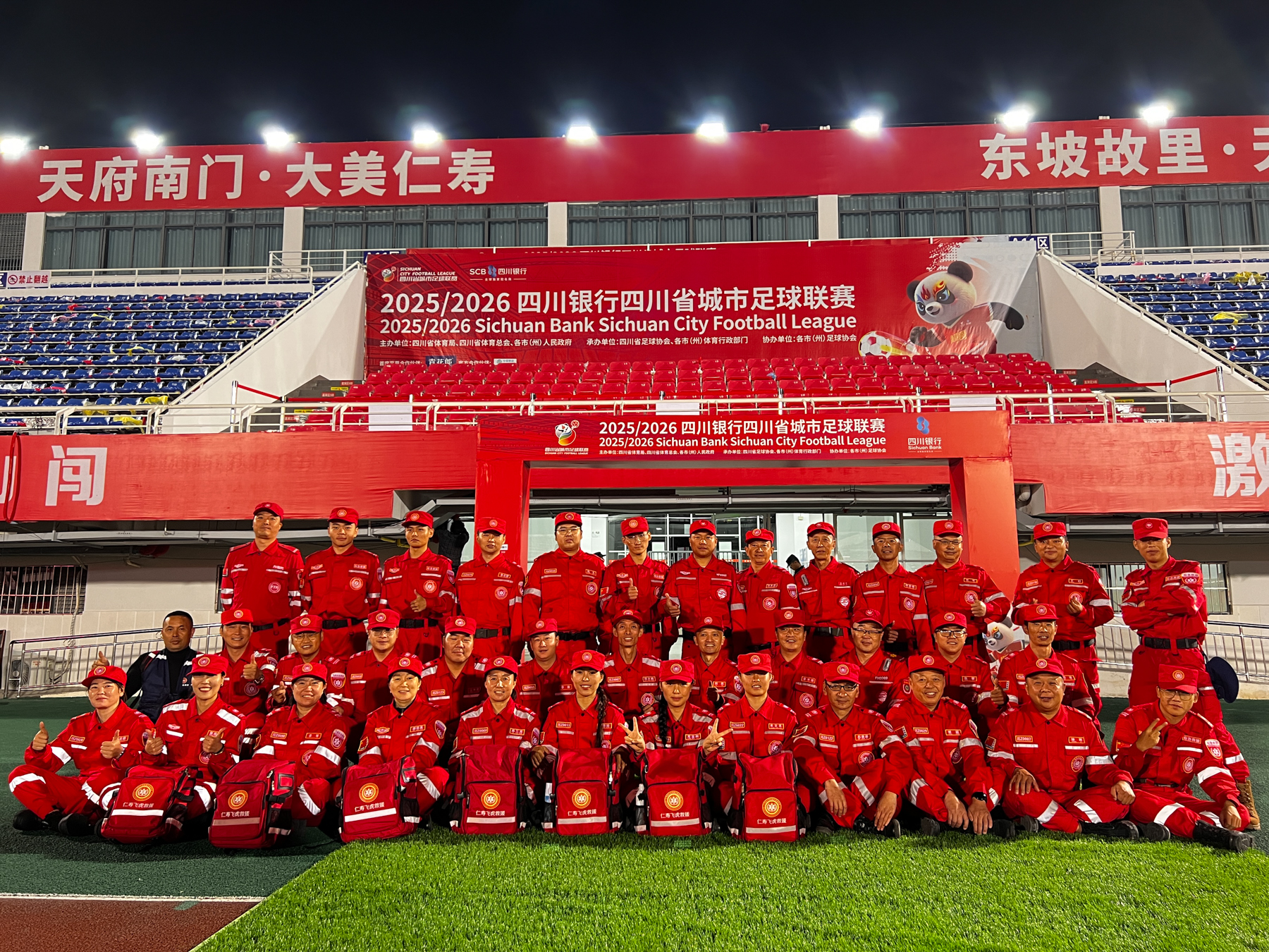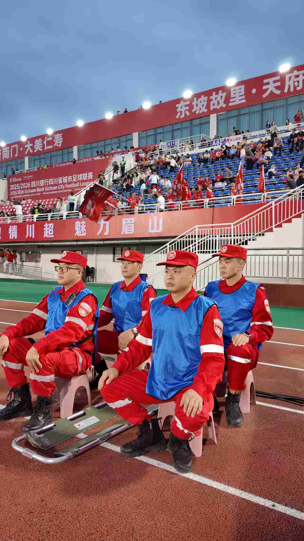 10月6日与10月19日,航空工程技术学院应急救援技术专业阿木夫以、杨佳浩等八名同学,应邀参与了川超联赛眉山主场对阵乐山及攀枝花场次的现场应急救援保障工作。