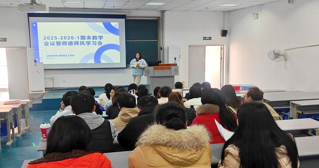 为深入贯彻新时代教师队伍建设要求,扎实做好期末教学工作,系统谋划下学期改革发展,公共教学部、马克思主义学院于12月17日下午14:30在远航楼309召开全体专兼职教师大会。会议由公共教学部主任刘秀萍主持,会议聚焦“师德师风建设”与“教学质量提升”两大核心主题,对期末重点工作与下学期改革方向进行了全面部署。